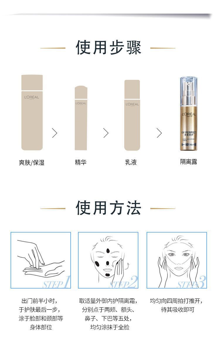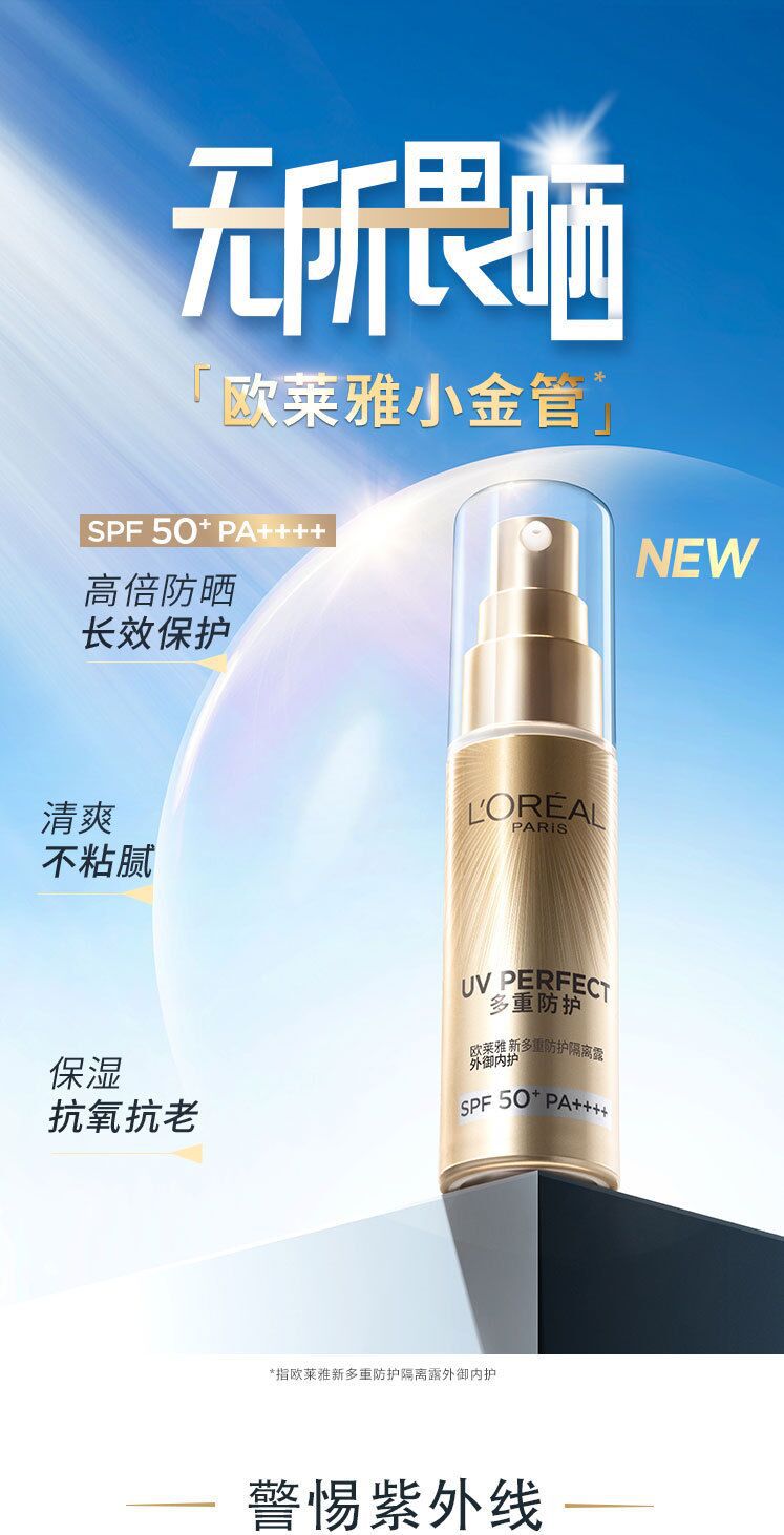 【中欧班列精选】【欧莱雅小金管】防晒霜全身面部防紫外线晒黑美容美白护肤多重防护隔离露男女30ml YLPY