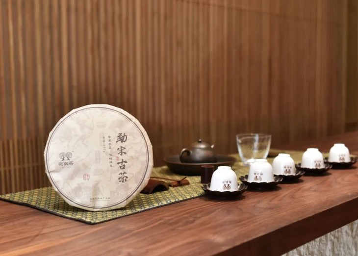 2021春,精选勐宋古茶发酵制作,经一年余存放,现压制成357克勐宋熟饼。