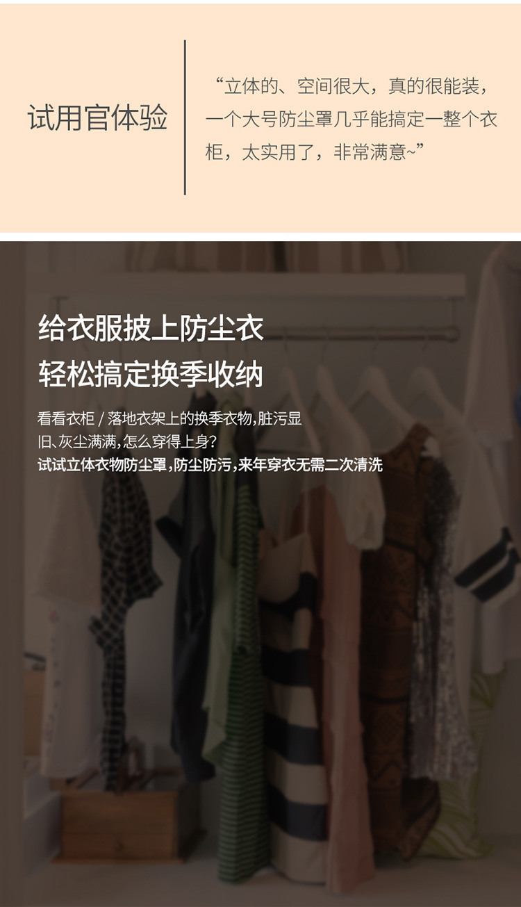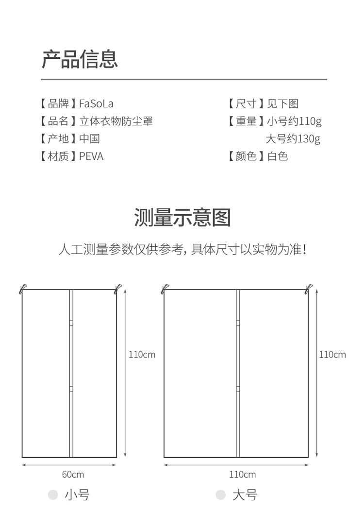 FaSoLa落地式立体衣服防尘罩挂式透明加宽防尘袋家用可水洗收纳袋