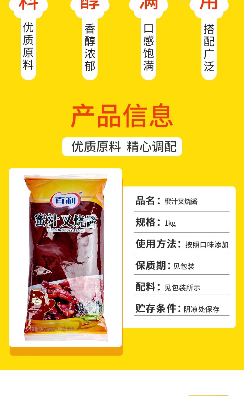 1kg 百利 蜜汁叉烧酱 蜜汁烤肉拌饭酱烤翅叉烧饭酱手抓饼调味酱