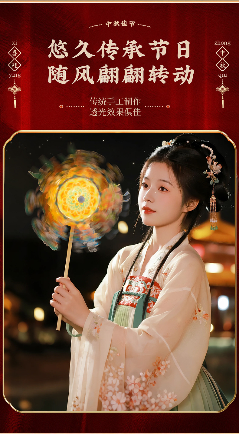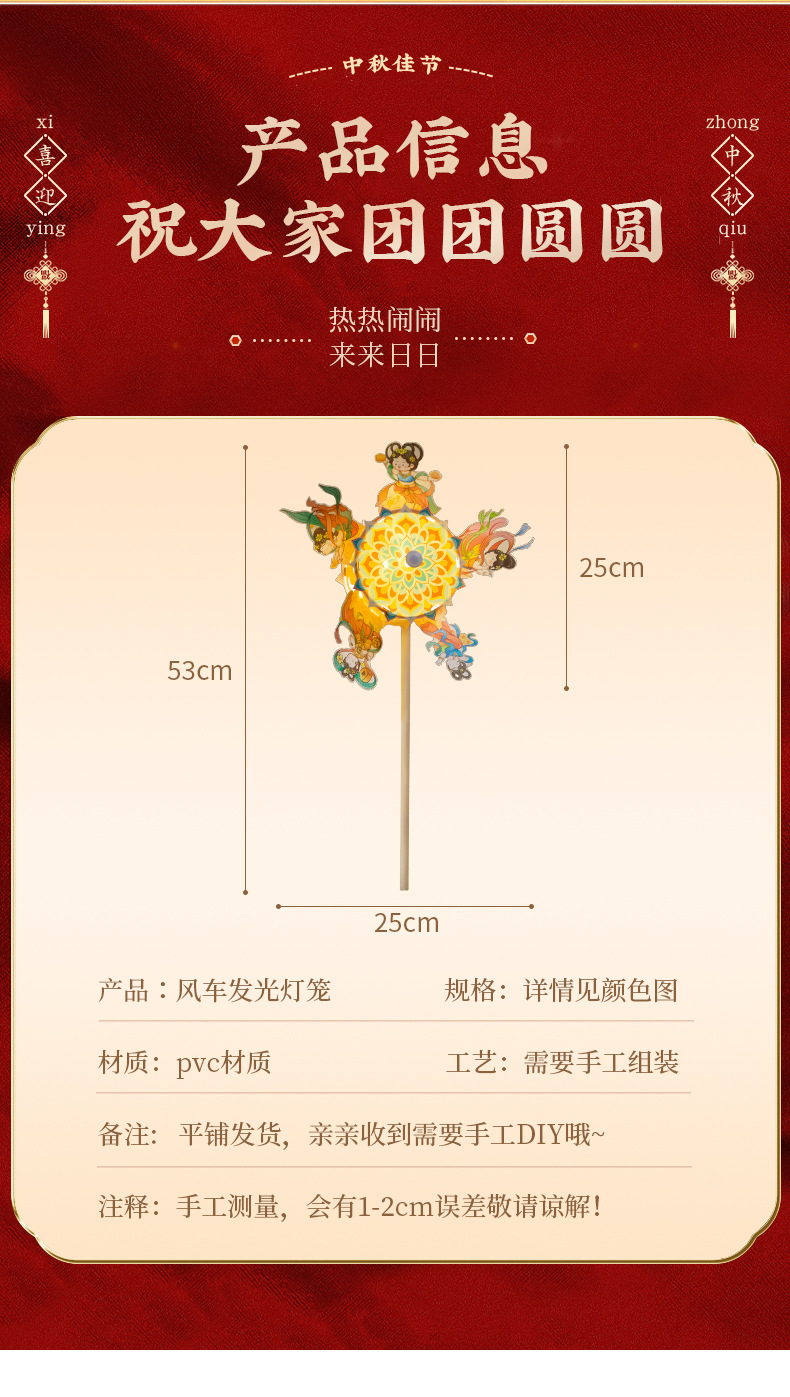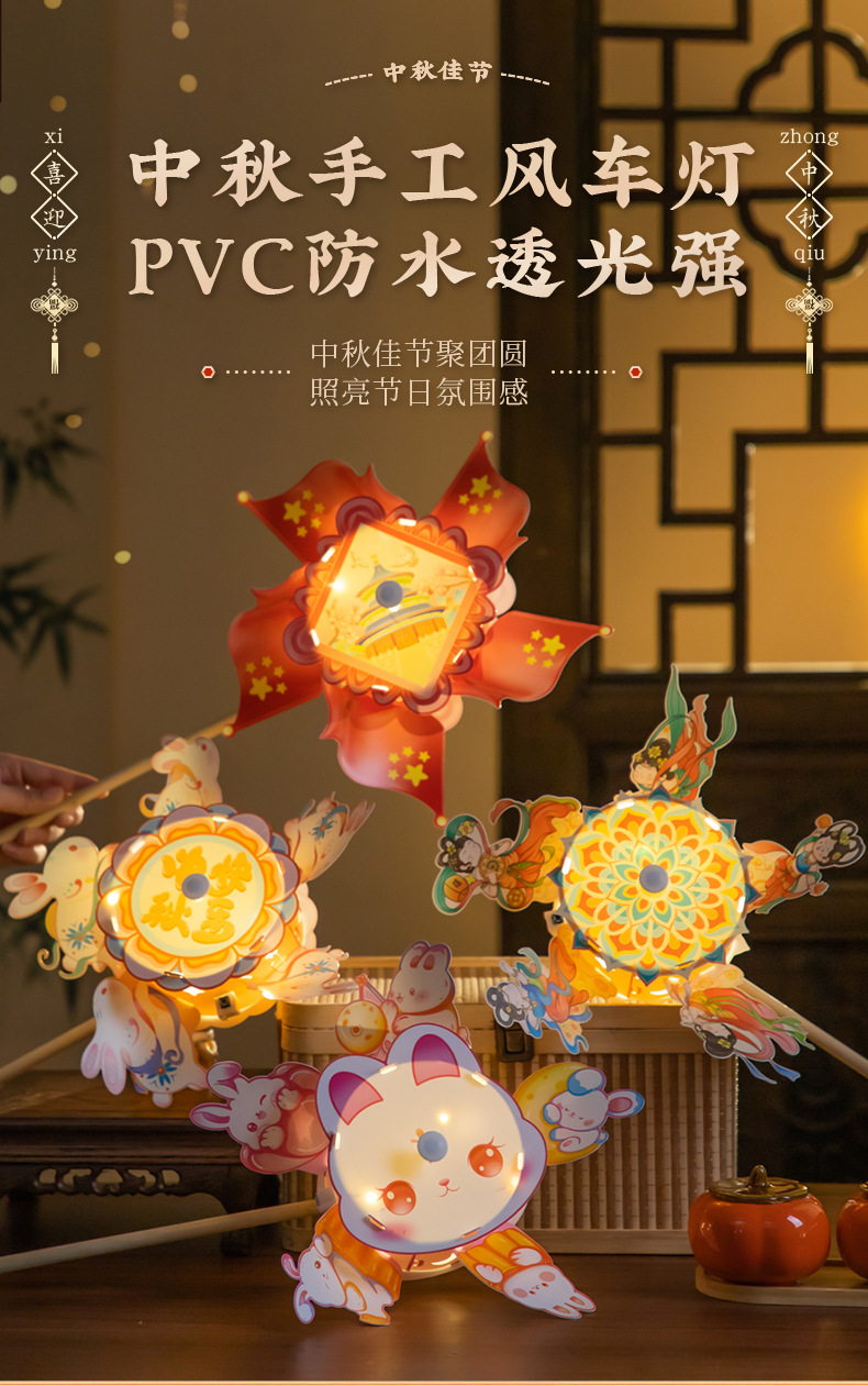 买2送1【可旋转的风车灯 防水不易破】中秋手工风车灯 PVC防水透光强 DIY手工灯笼材料包 超炫酷灯笼造型