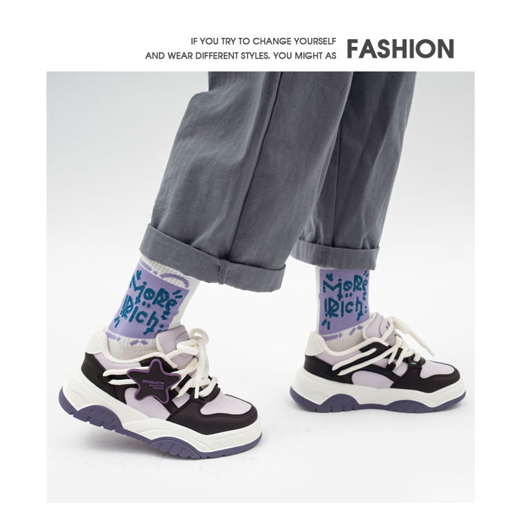 「三款配色!加绒款」甜酷星星拼色加绒板鞋女2023秋冬新款鞋ins潮厚底女鞋小众鞋子女 商品图3