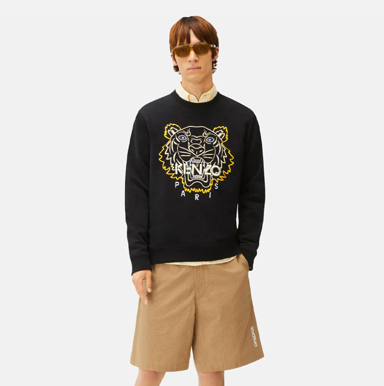 KENZO 高田贤三 男士大虎头徽标棉质长袖卫衣 黑色 FC55 SW129 4XH 99
