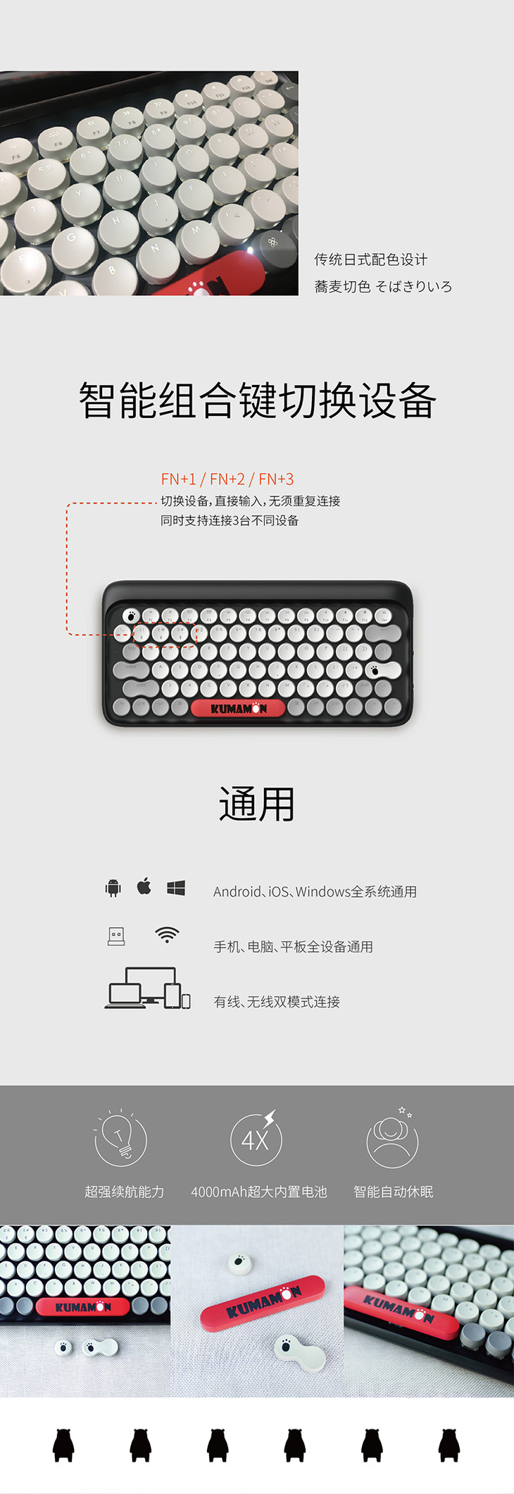 洛斐(Lofree)EH112S DOT圆点蓝牙机械键盘 熊本熊授权正版 青轴背光有线蓝牙办公键盘无线