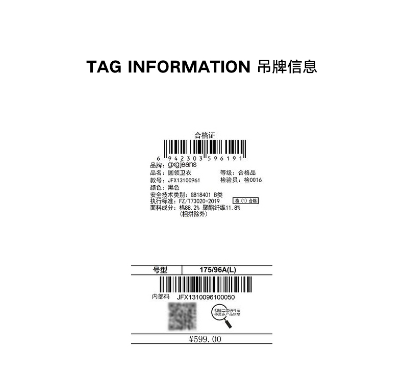 gxg.jeans男装春季热卖款时尚圆领卫衣JFX13100961