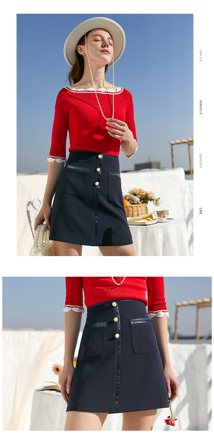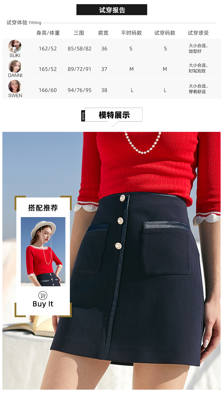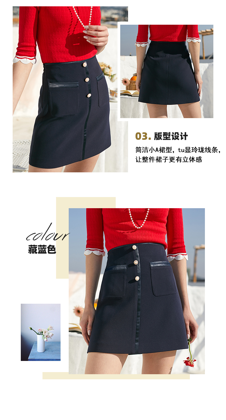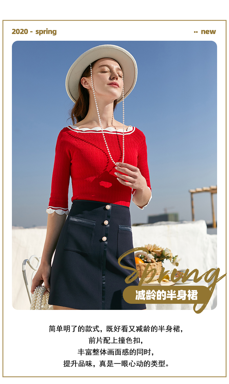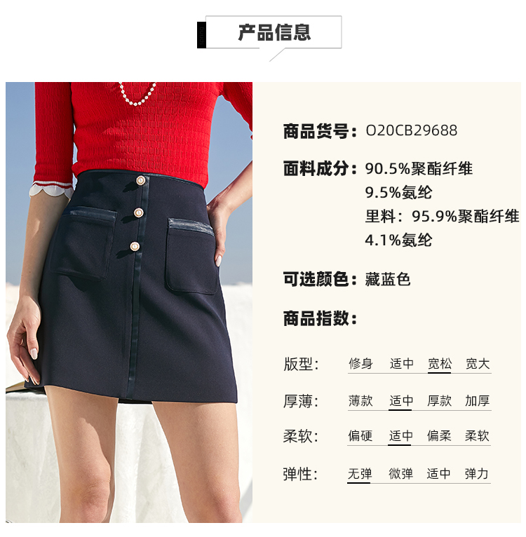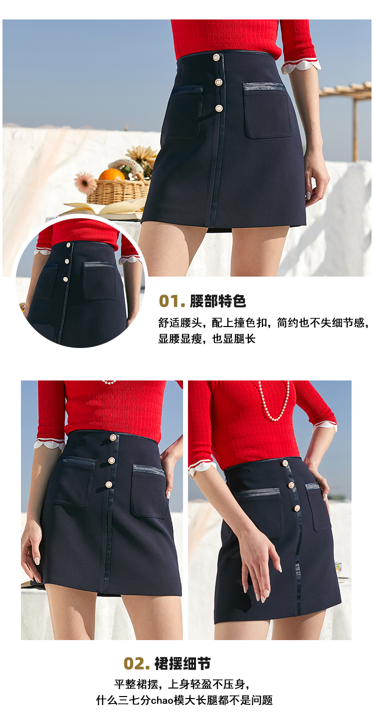 欧芮儿春新款高腰显瘦半身裙女洋气短裙简约百搭A字包臀裙