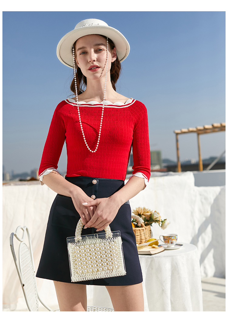 欧芮儿夏新款短袖针织衫女T恤打底衫荷叶边白色V领上衣薄款