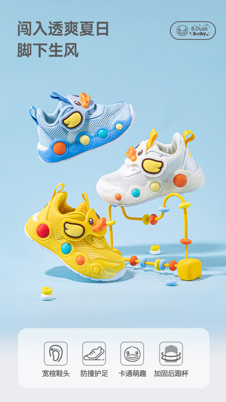 B.Duck小黄鸭童鞋夏季儿童时尚休闲鞋23-30 BY1481027
