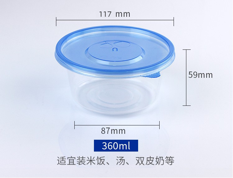 360ml 蓝盖圆碗保鲜盒 水果捞盒外卖打包盒 5入/50入