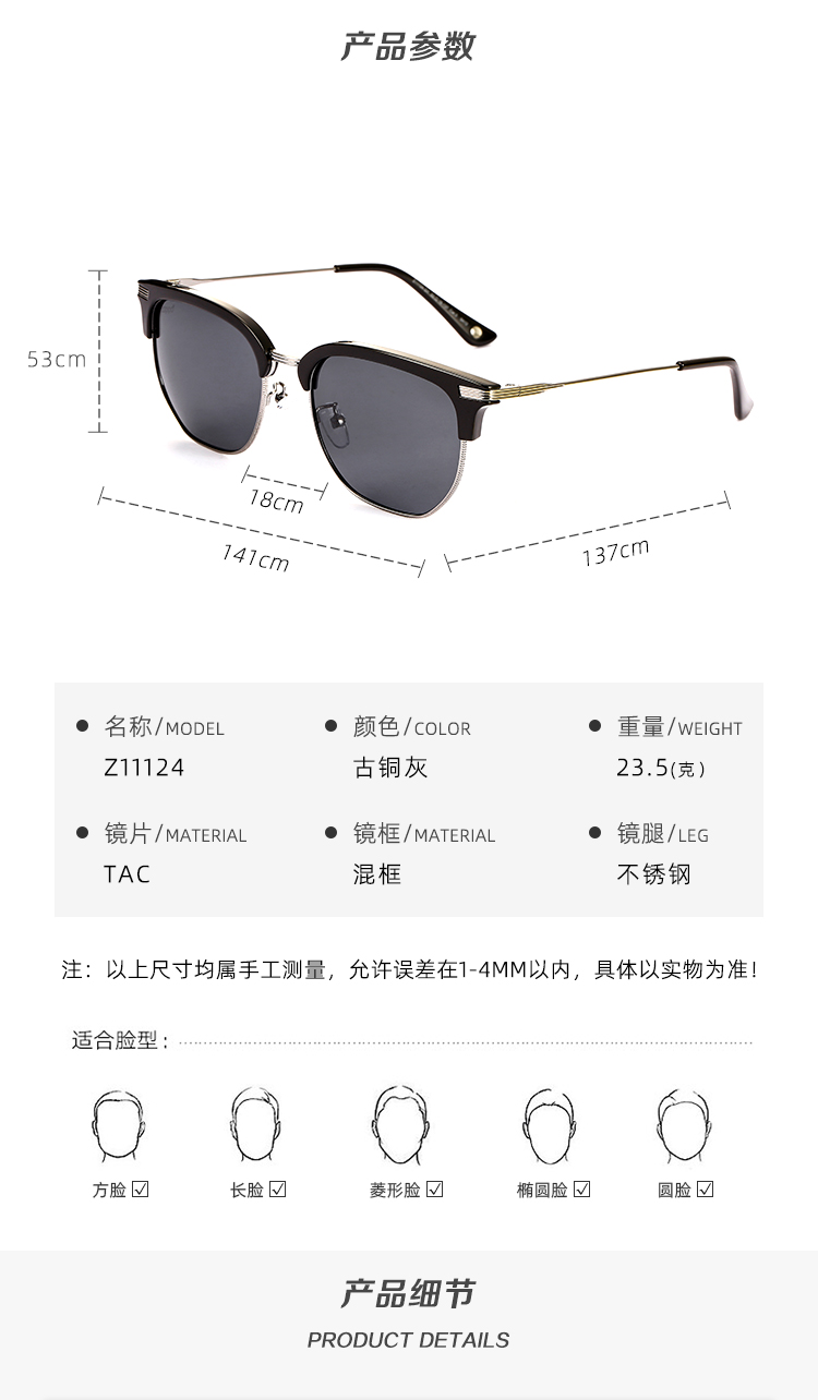 zippo高清时尚太阳镜Z11124_53_gy