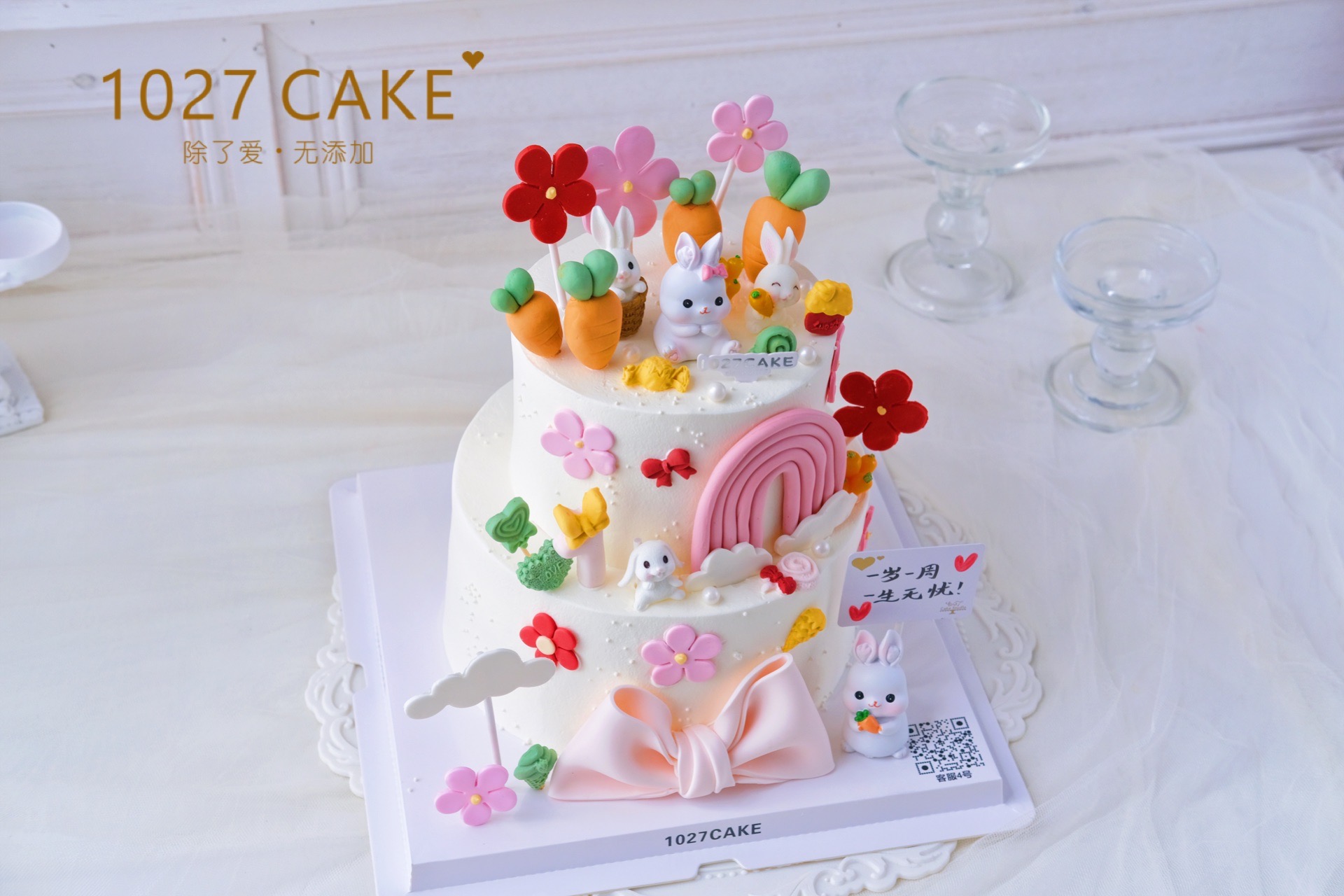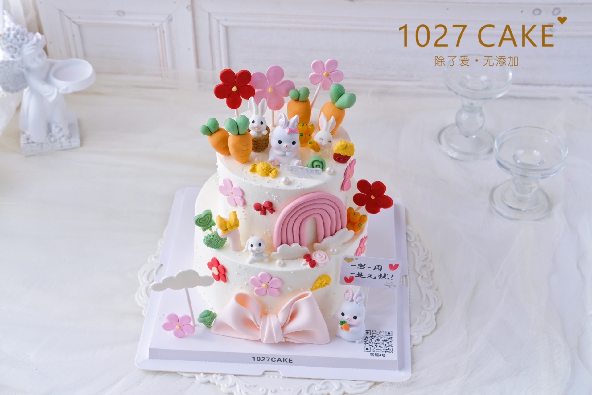 1027CAKE | 小兔子 双层款式 翻糖装饰 周岁