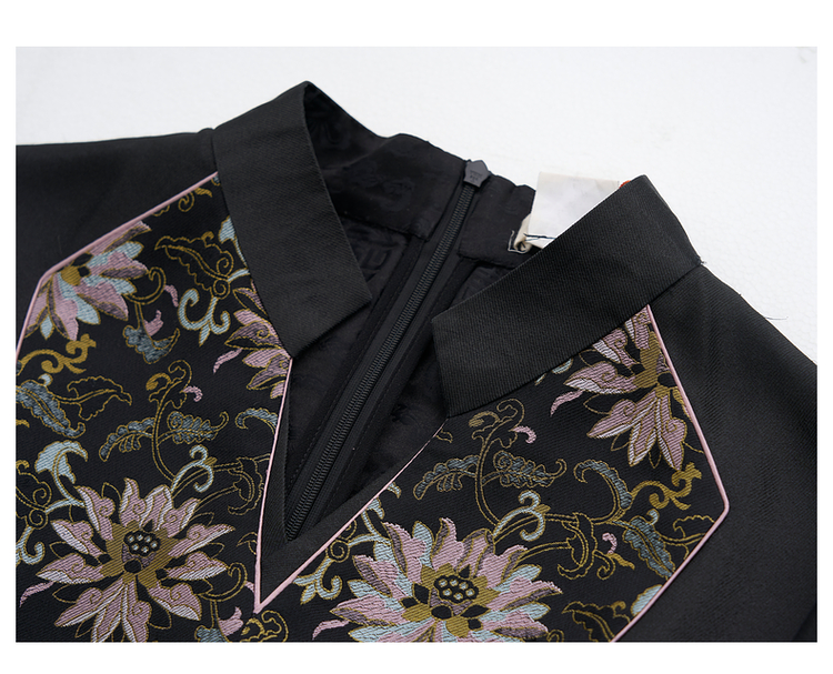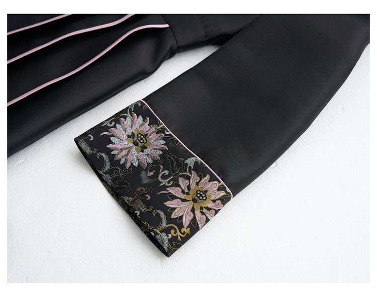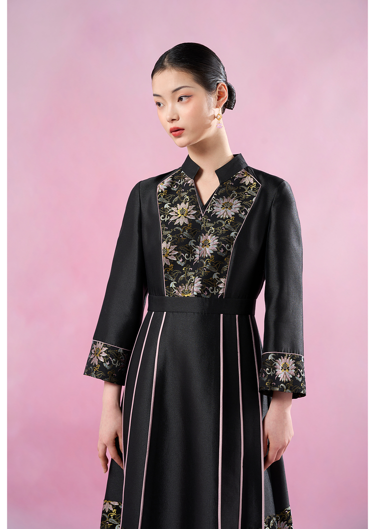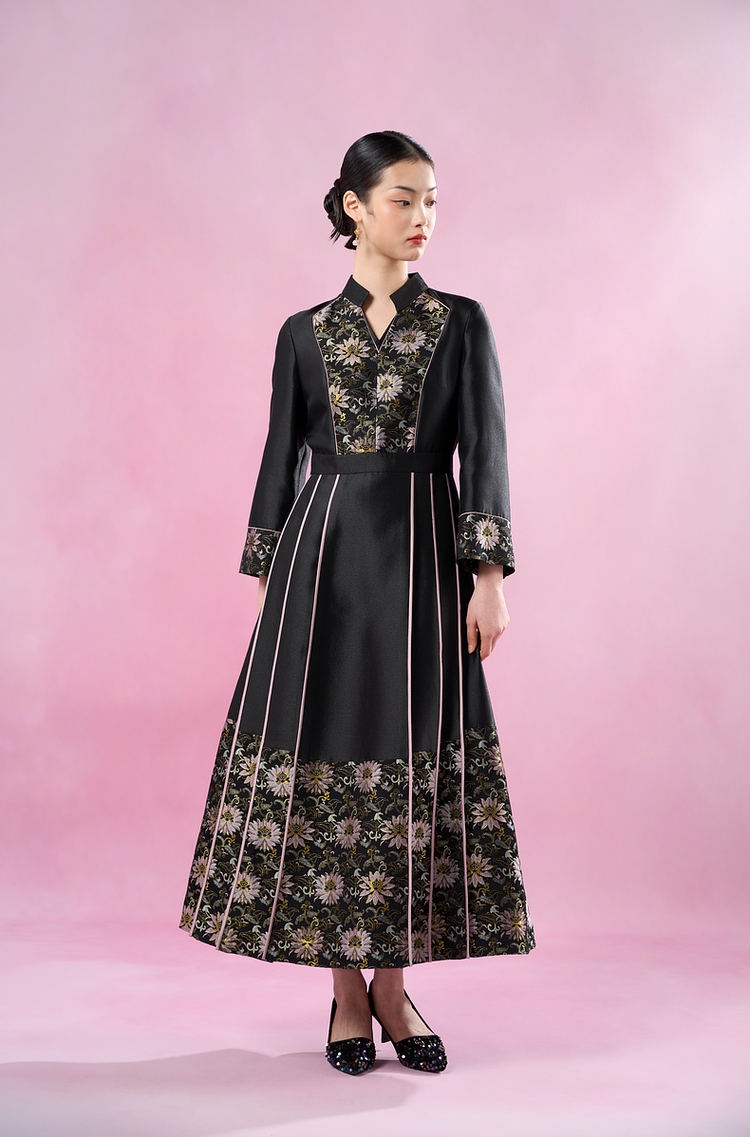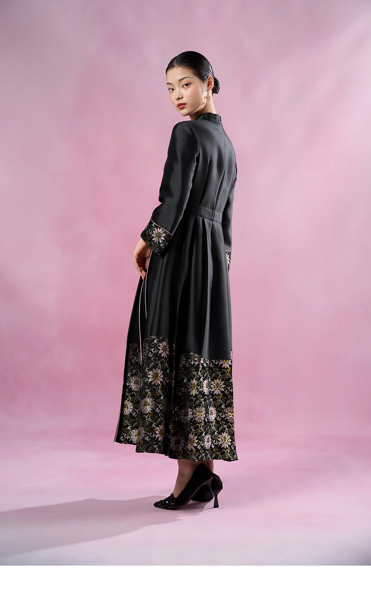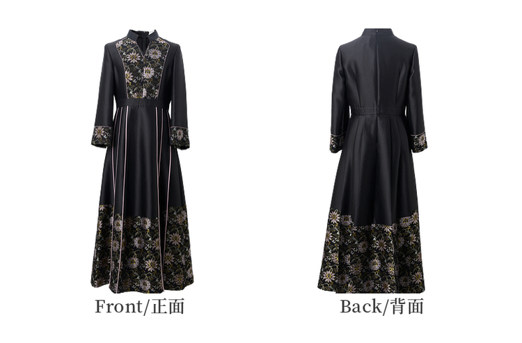 吉祥衣家2025春夏新款气质长袖绣花新中式国风修身如意莲依连衣裙