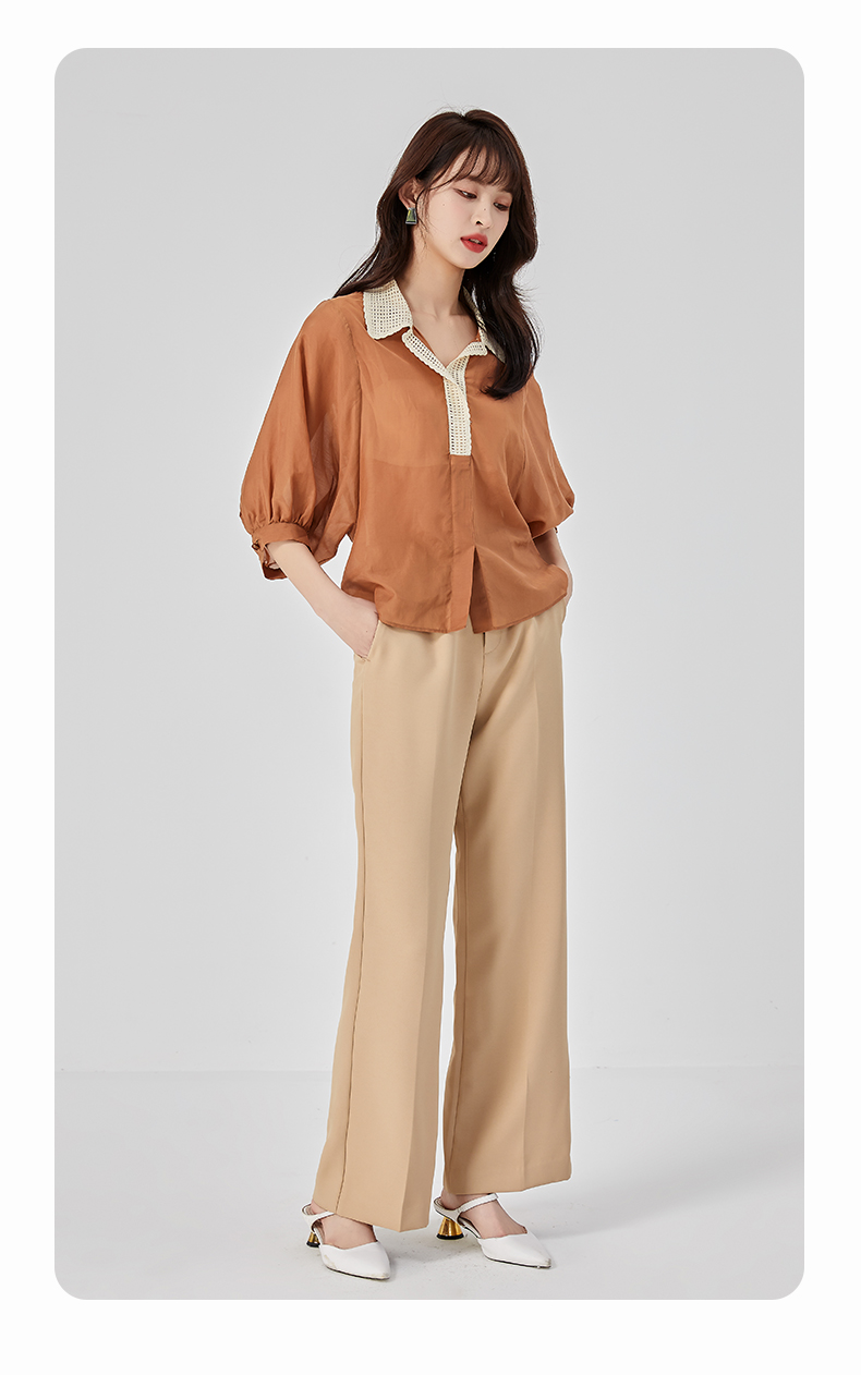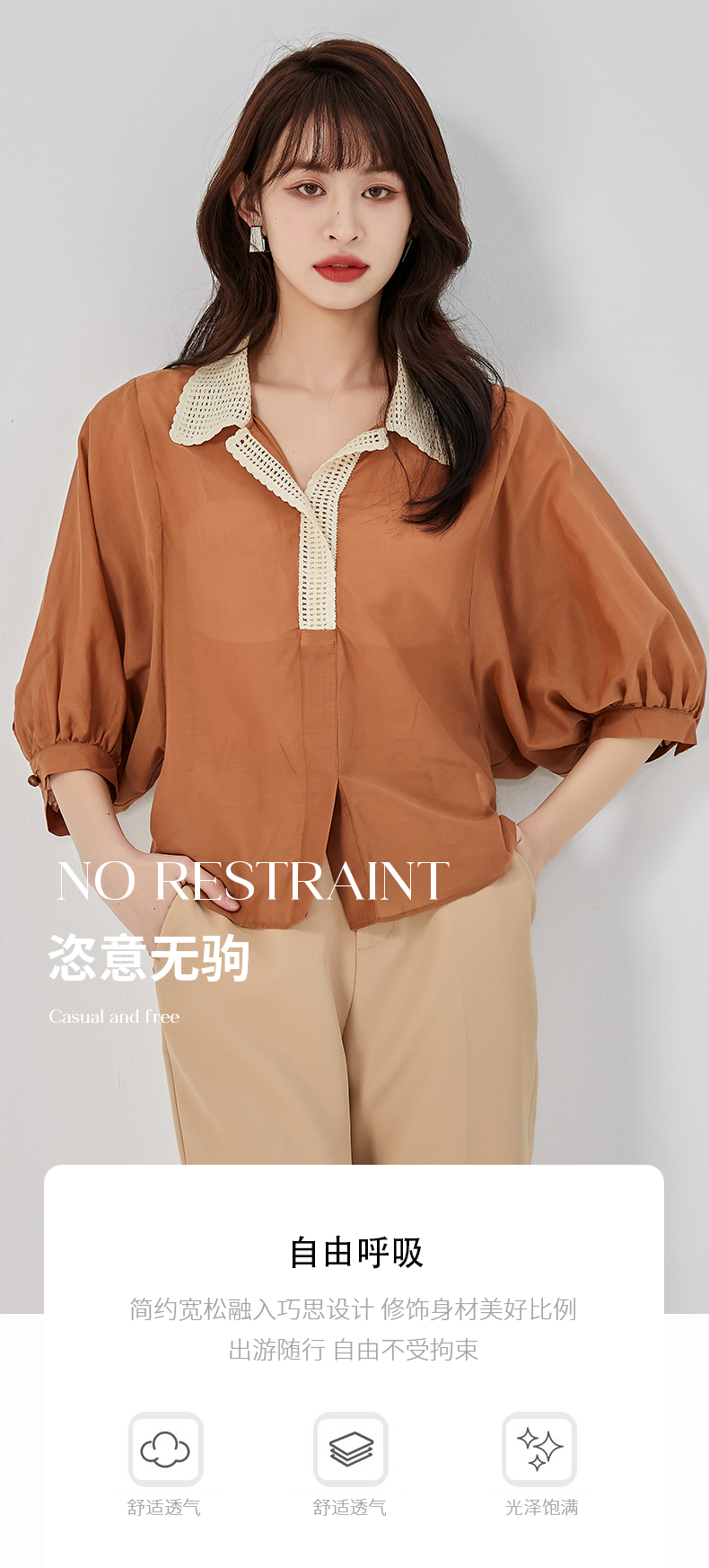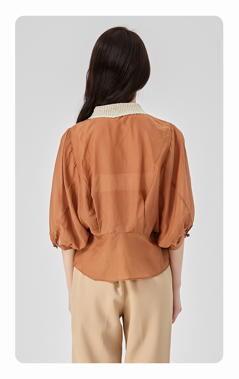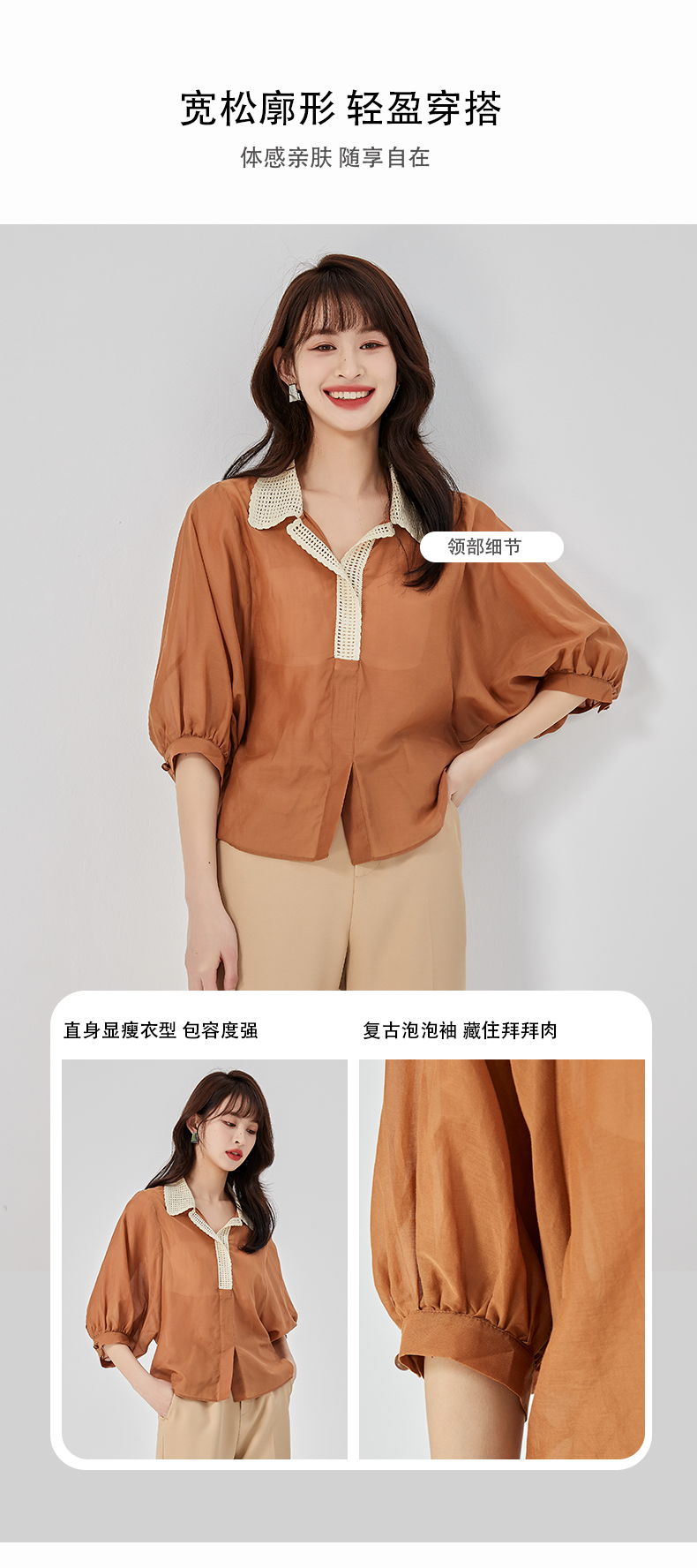 oldcolour2023夏季新款法式复古直筒宽松泡泡袖OL衬衫女O22012239