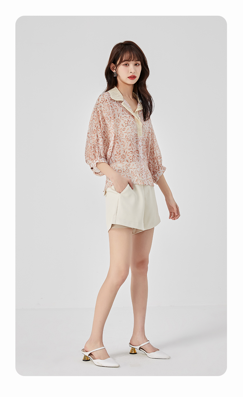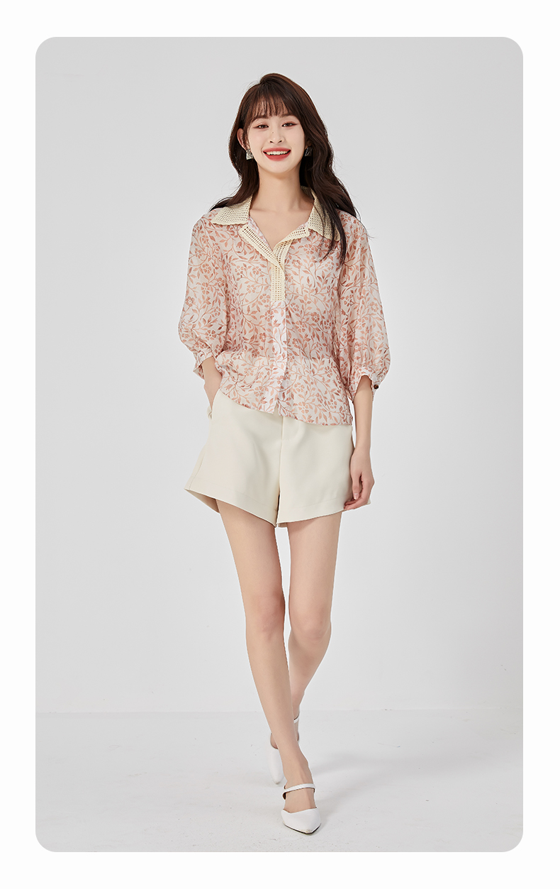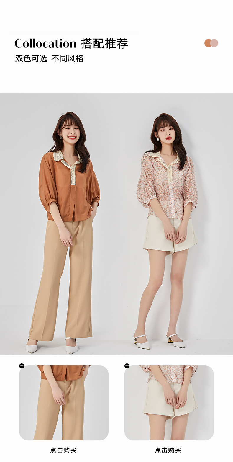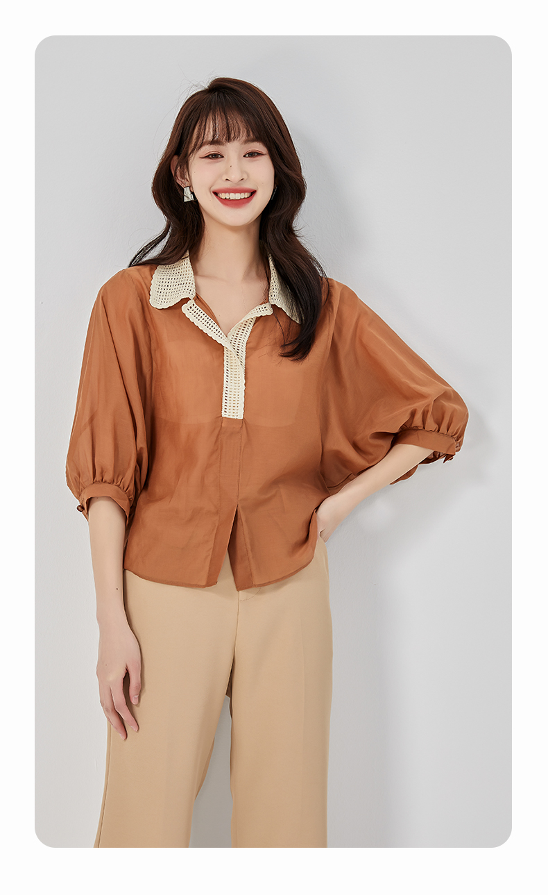 oldcolour2023夏季新款法式复古直筒宽松泡泡袖OL衬衫女O22012239