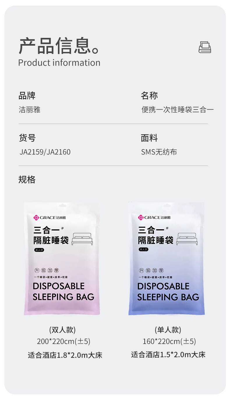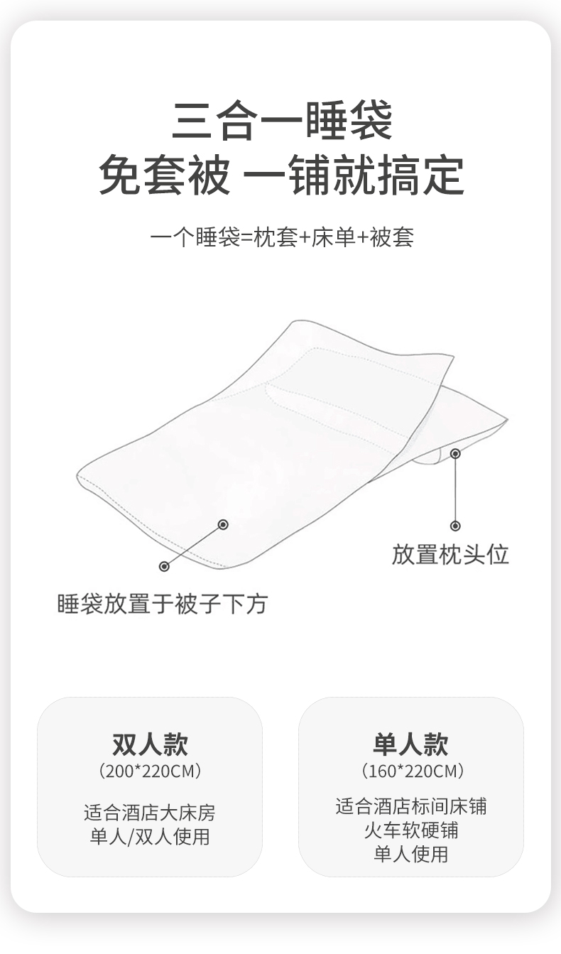 洁丽雅一次性睡袋出行一体式懒人设计隔脏睡袋亲肤透气旅游单双人