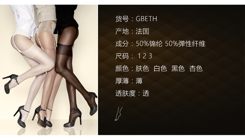 Gerbe格伯 法国原装进口大腿袜 超透薄贴肤美肌吊带袜 GBETH 17d