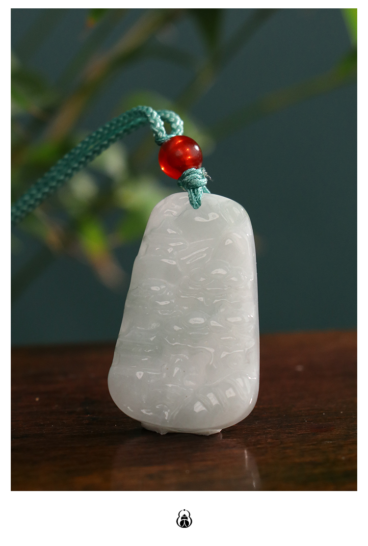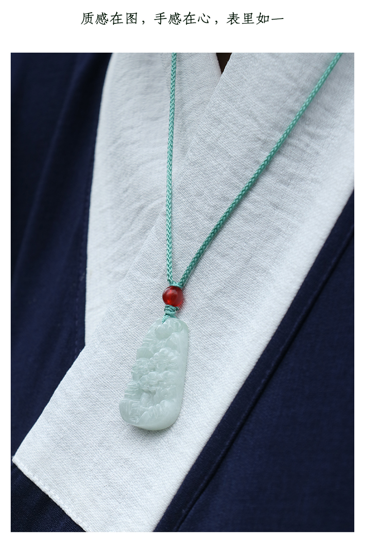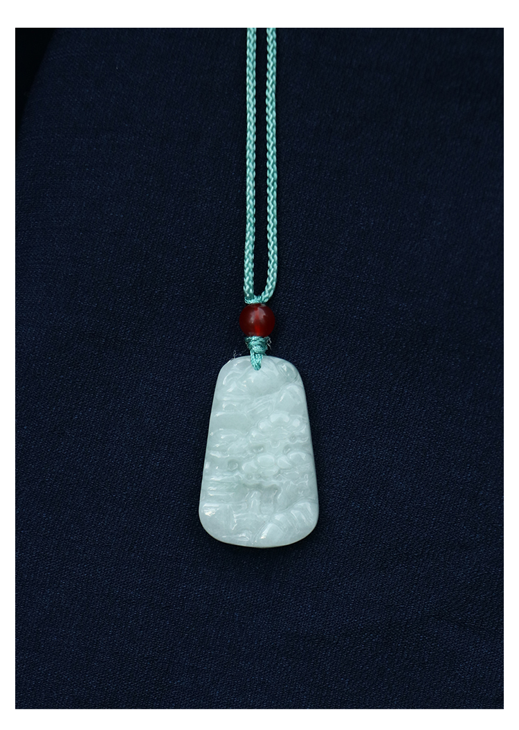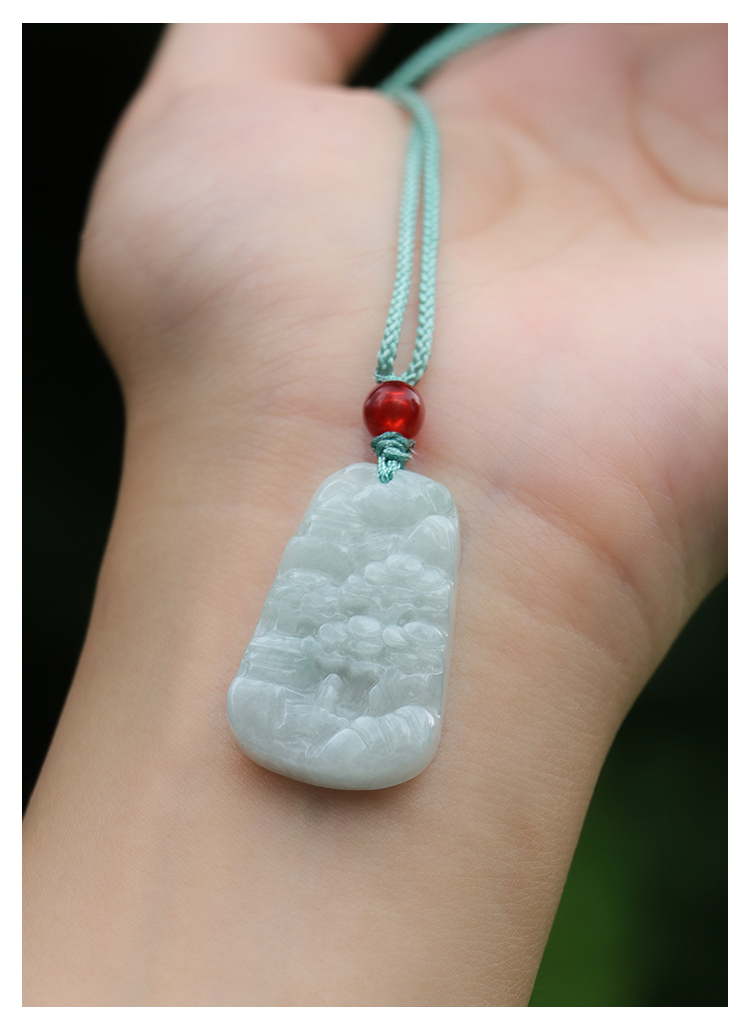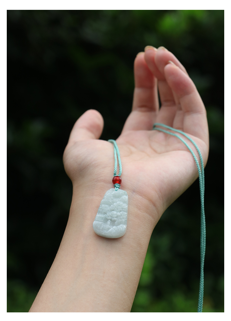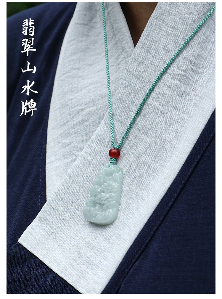 缅甸A货翡翠山水牌吊坠男女挂绳玉石项链