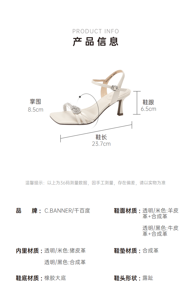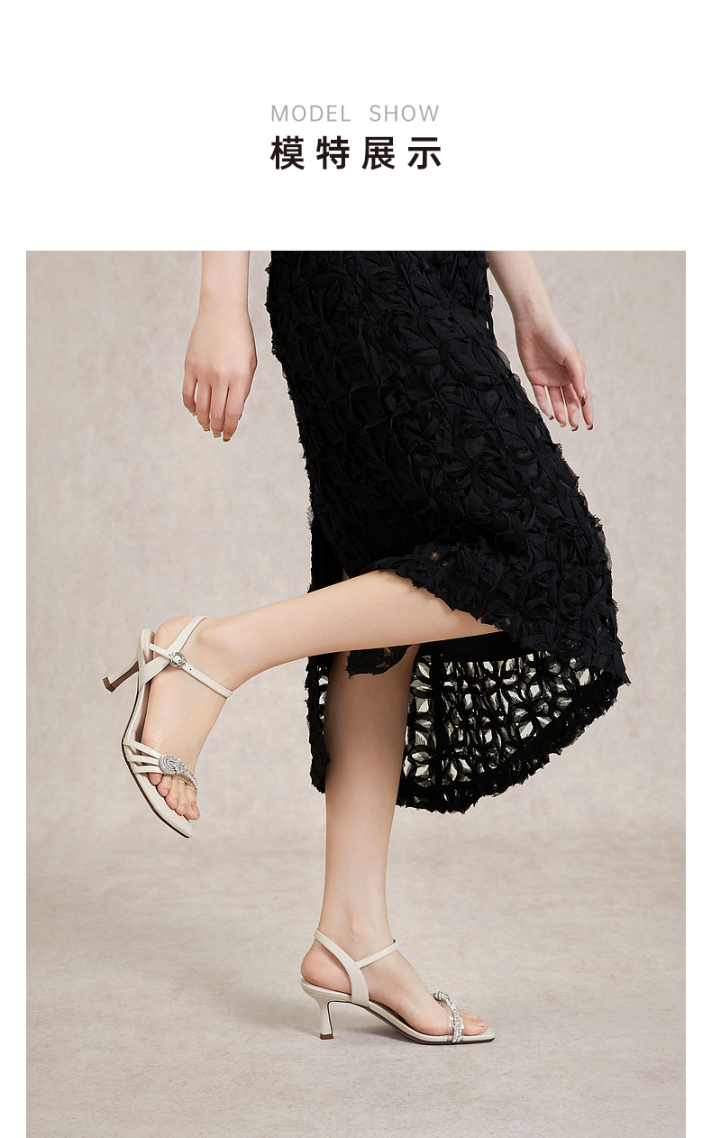 【静音系列】千百度细高跟时装凉鞋女款夏季绝美一字带A24354170