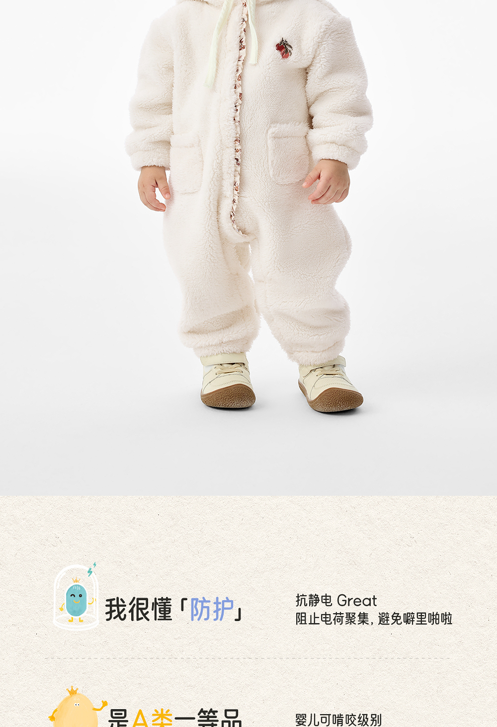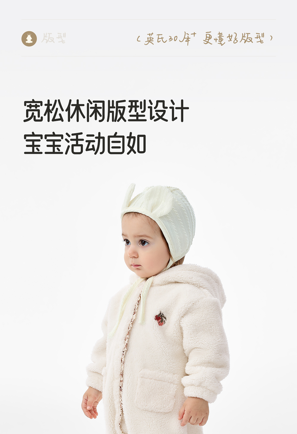 英氏婴儿连体衣秋冬季保暖女童衣服加绒加厚防寒哈衣YRHFJ4R026A