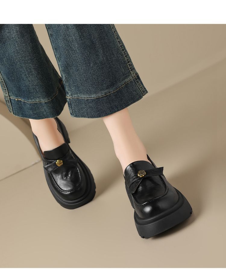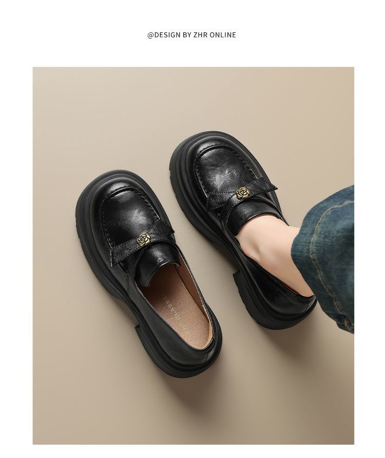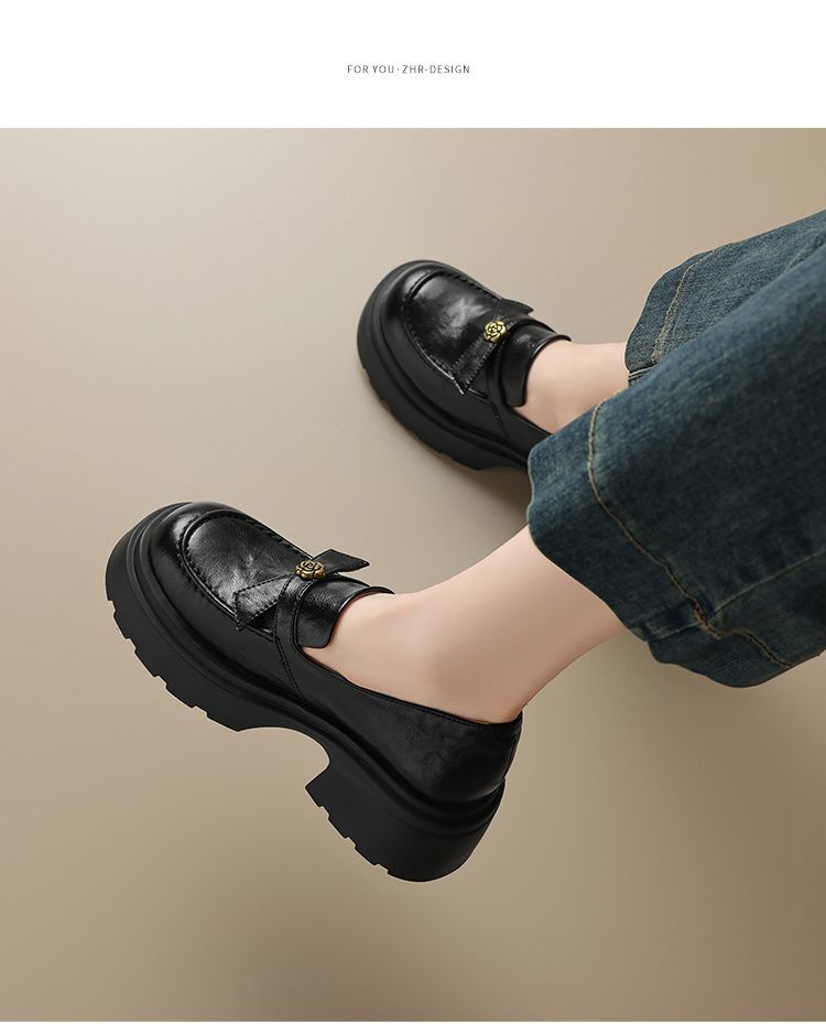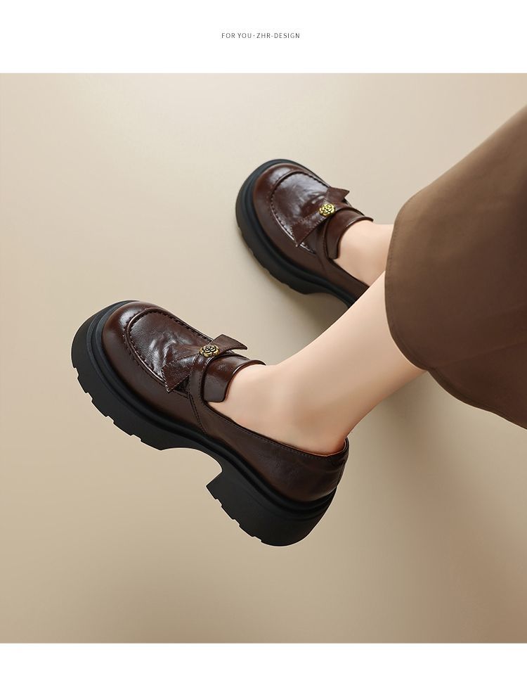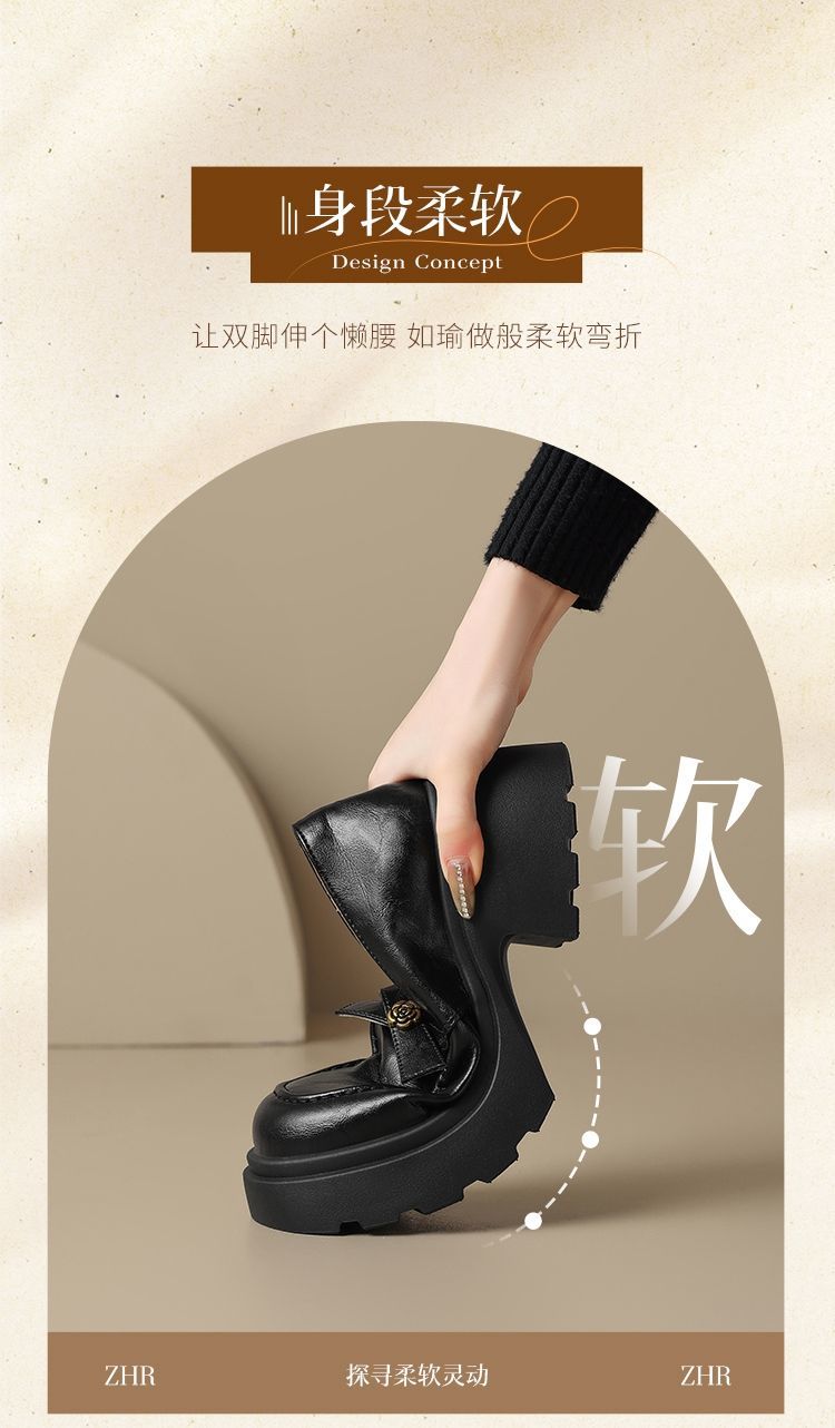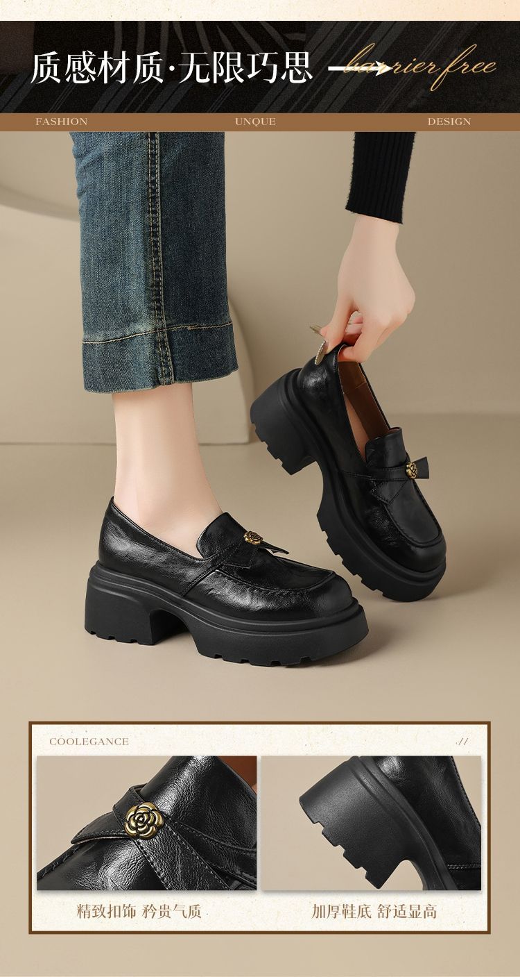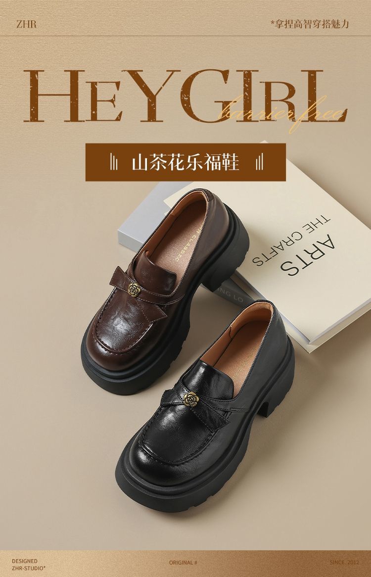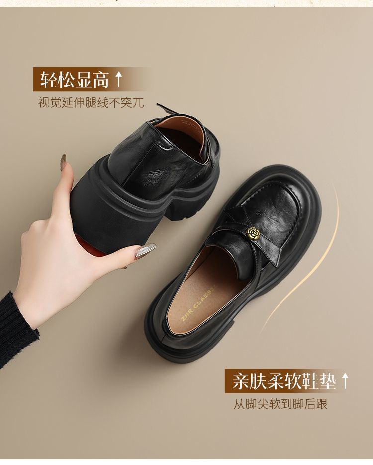 ZHR山茶花蝴蝶结厚底乐福鞋2026新款百搭增高通勤英伦风小皮鞋女