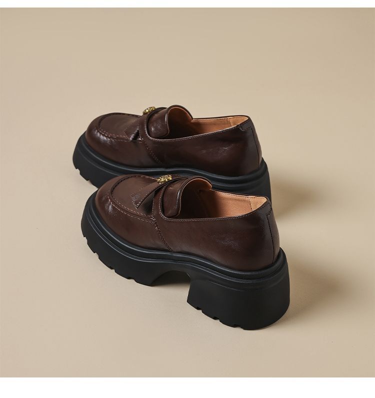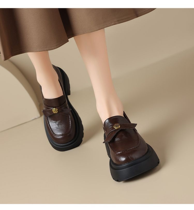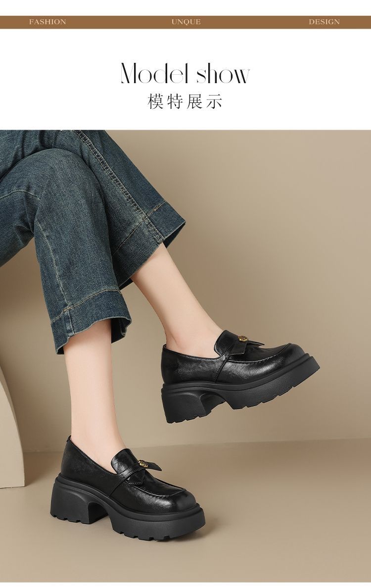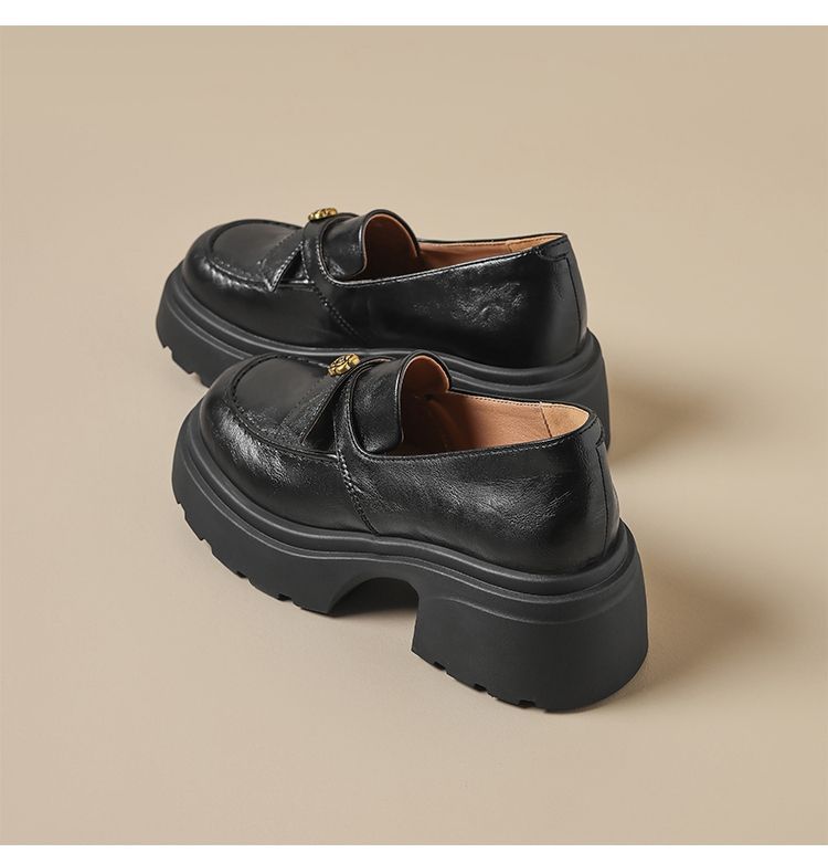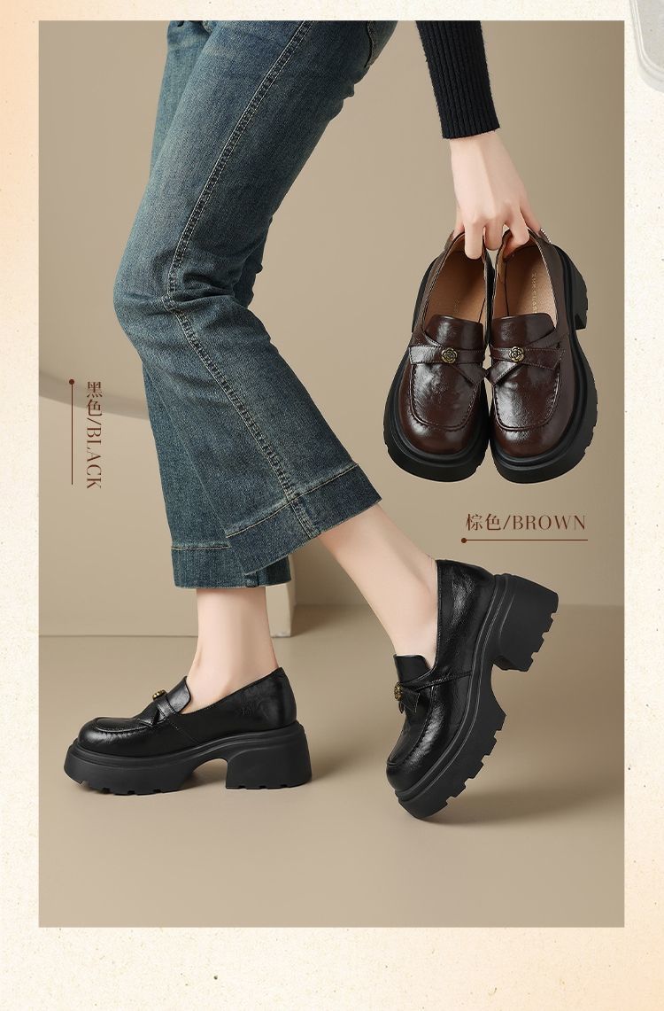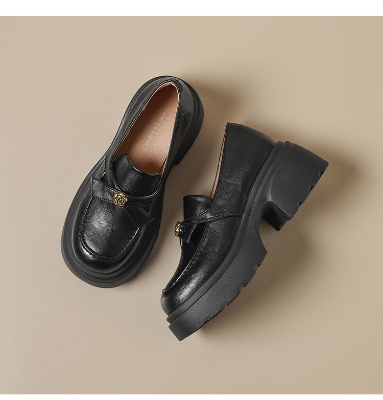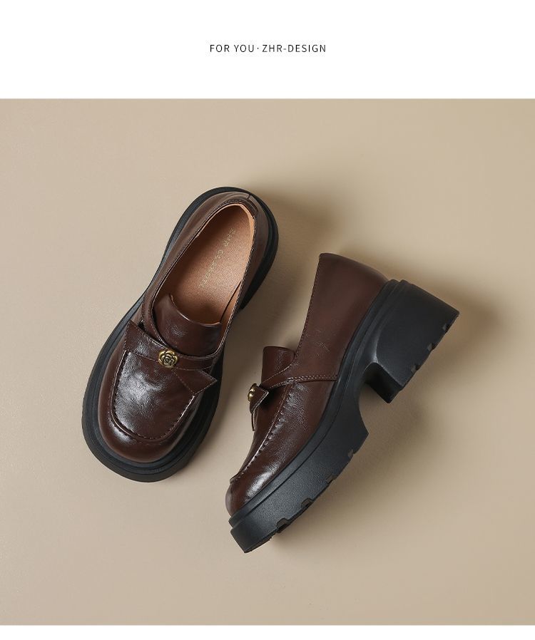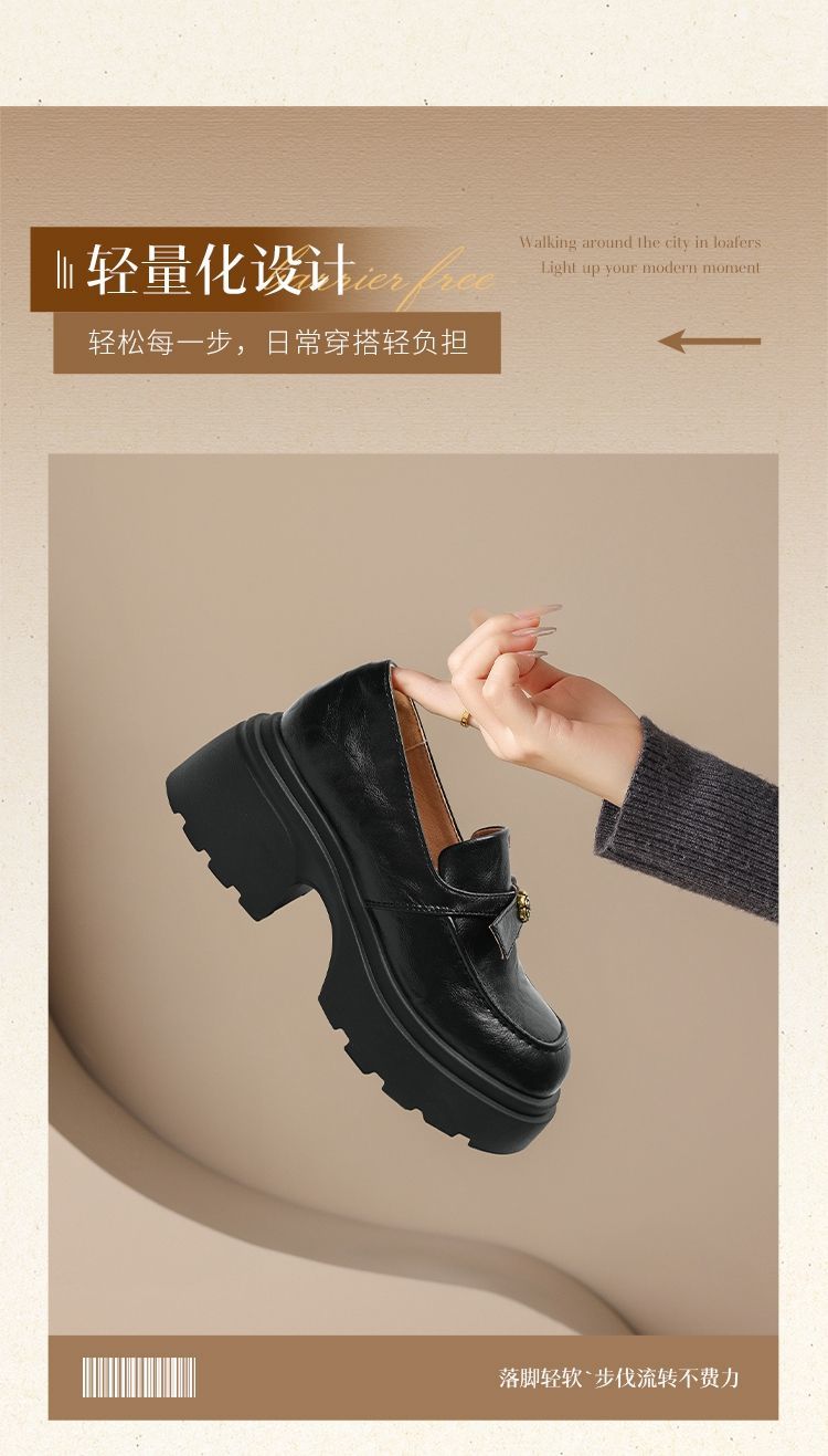 ZHR山茶花蝴蝶结厚底乐福鞋2026新款百搭增高通勤英伦风小皮鞋女