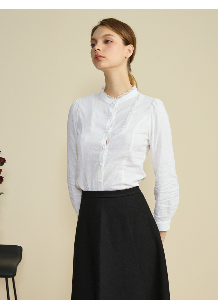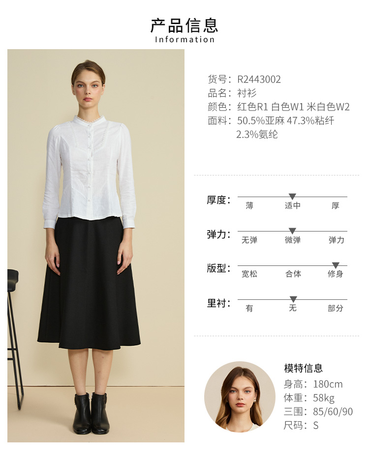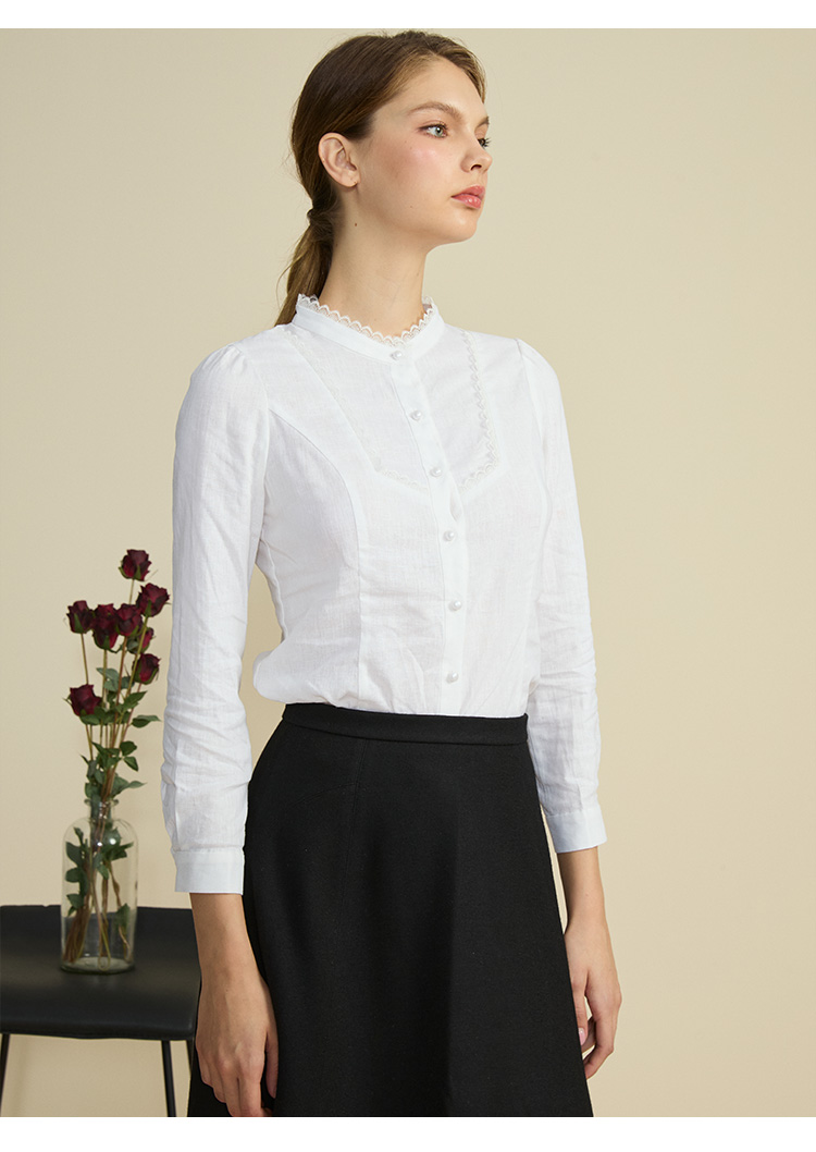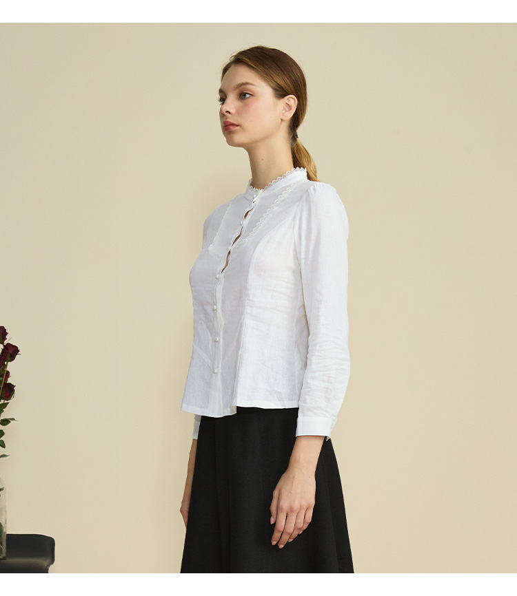 VIVIAN LIU薇薇安刘R2443002初秋女装新款花边单排扣修身外搭衬衫