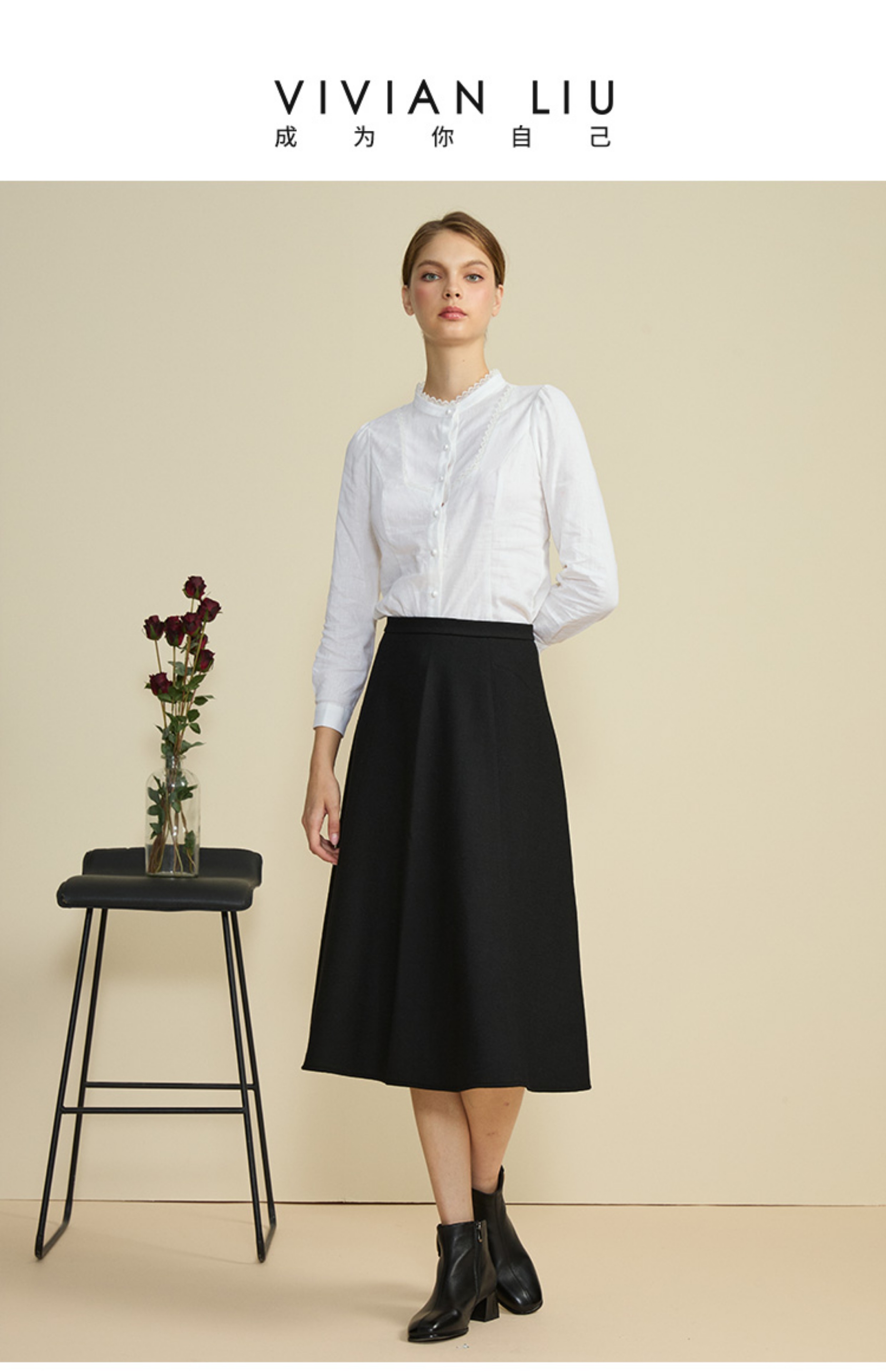 VIVIAN LIU TZ2414003梅春女装新款双排扣装饰侧开叉拉链半裙