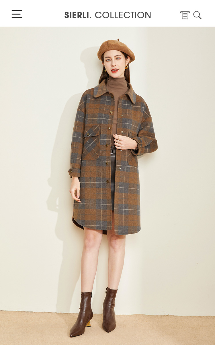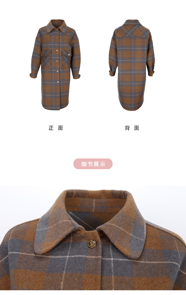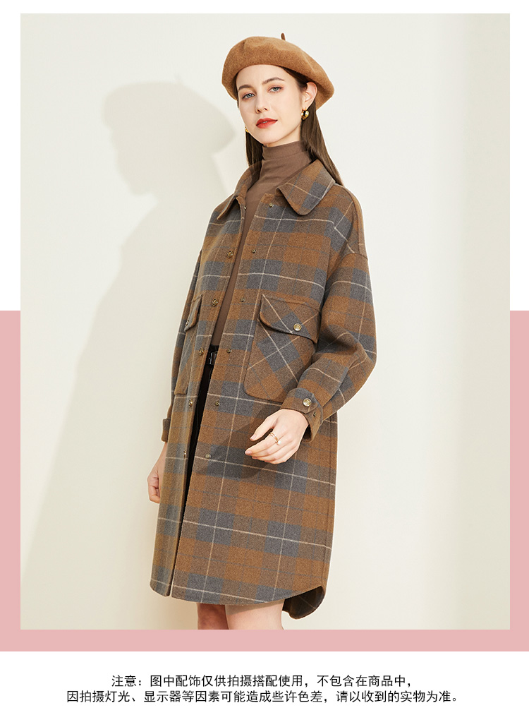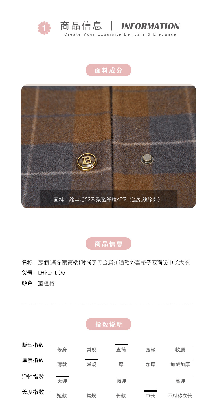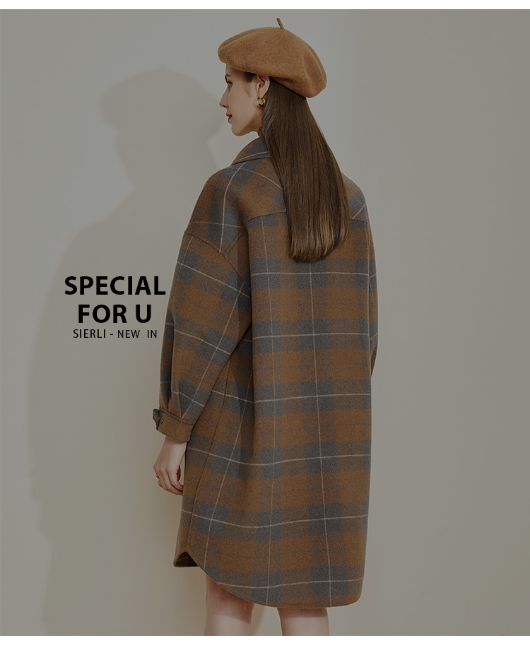 LH9L7斯尔丽2021瑟俪秋冬新款时尚字母金属扣外套格子双面呢中长大衣