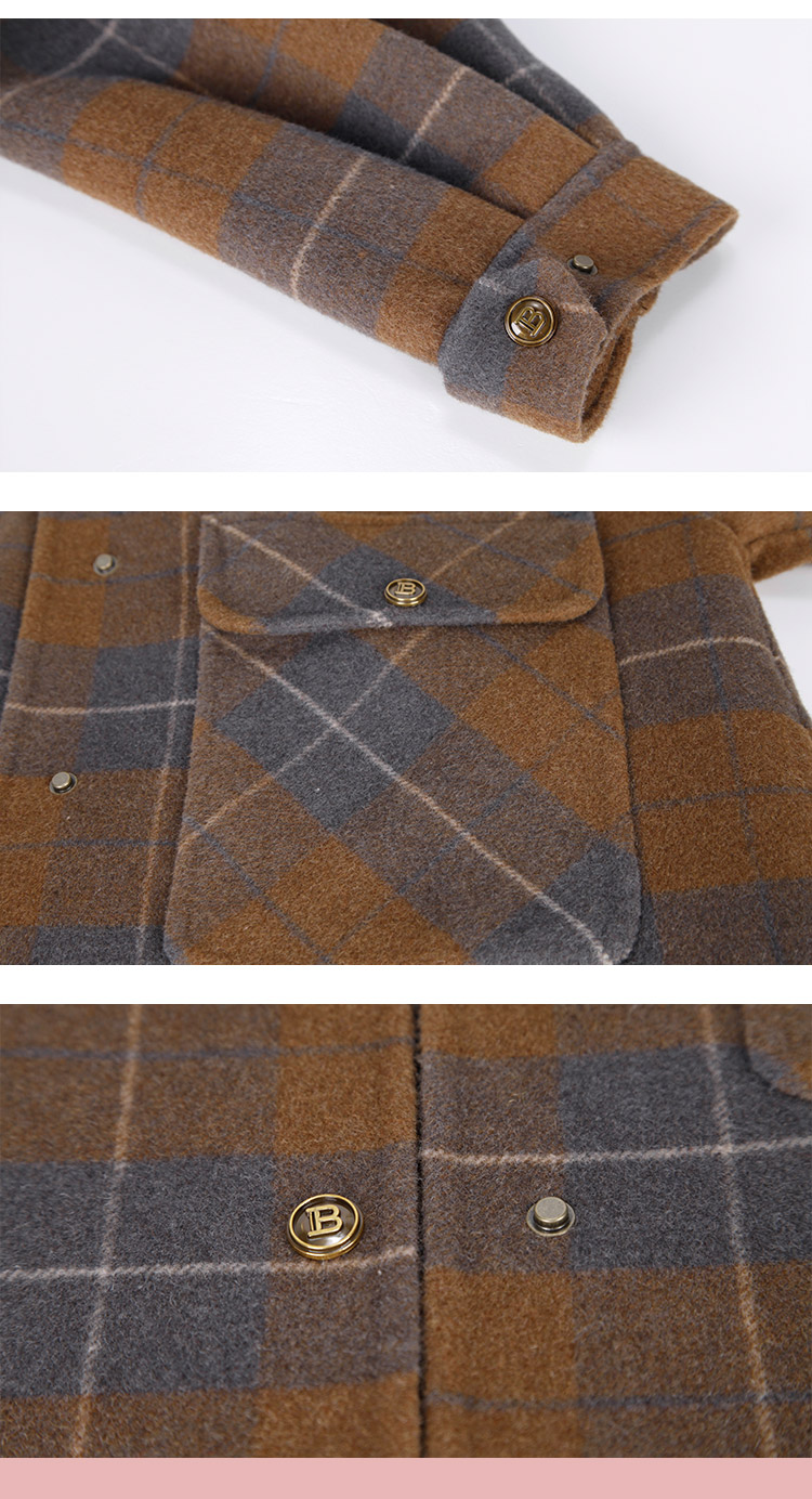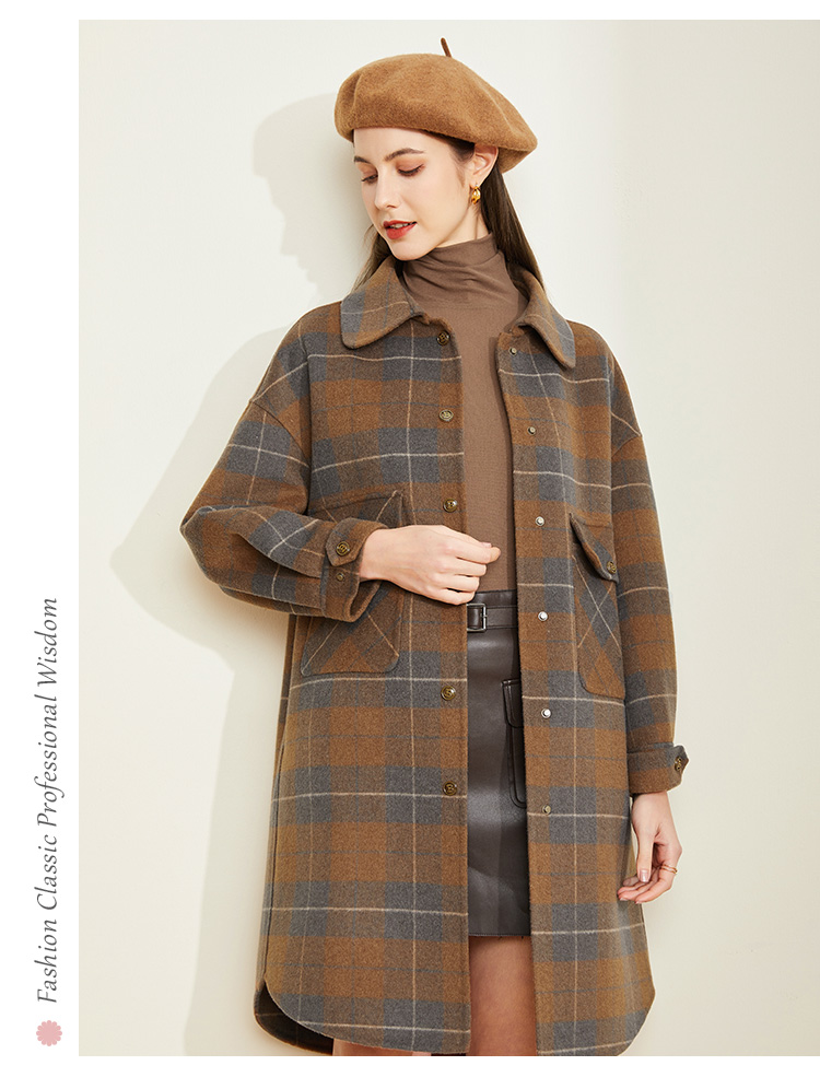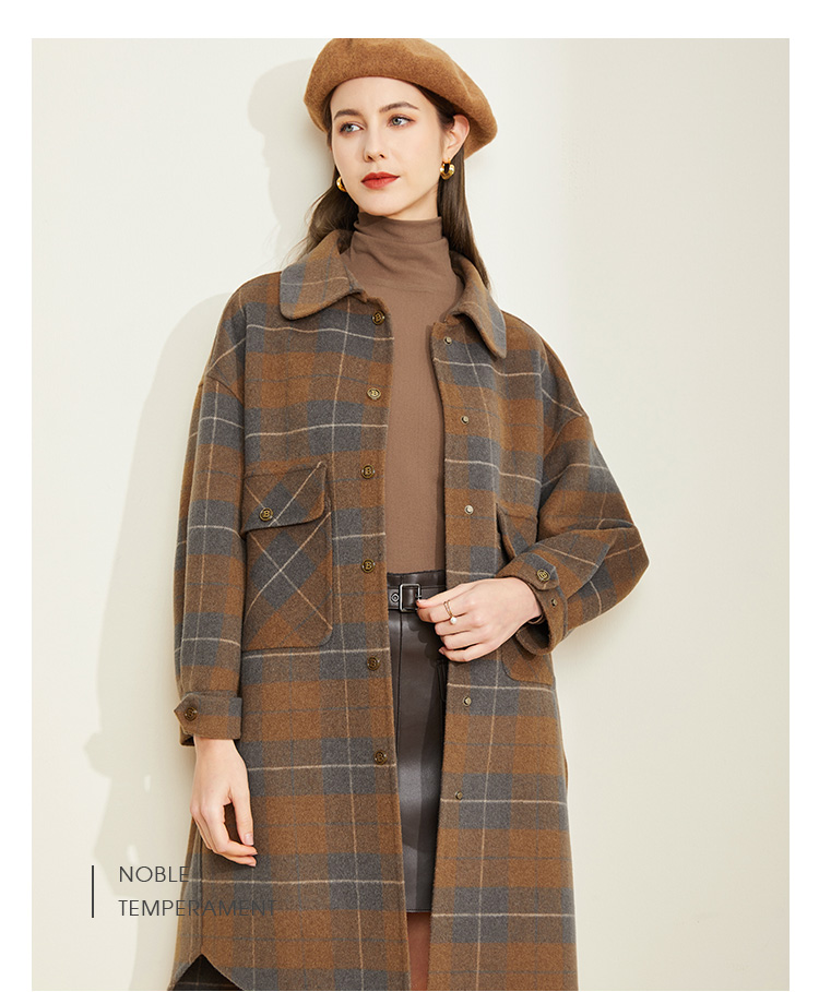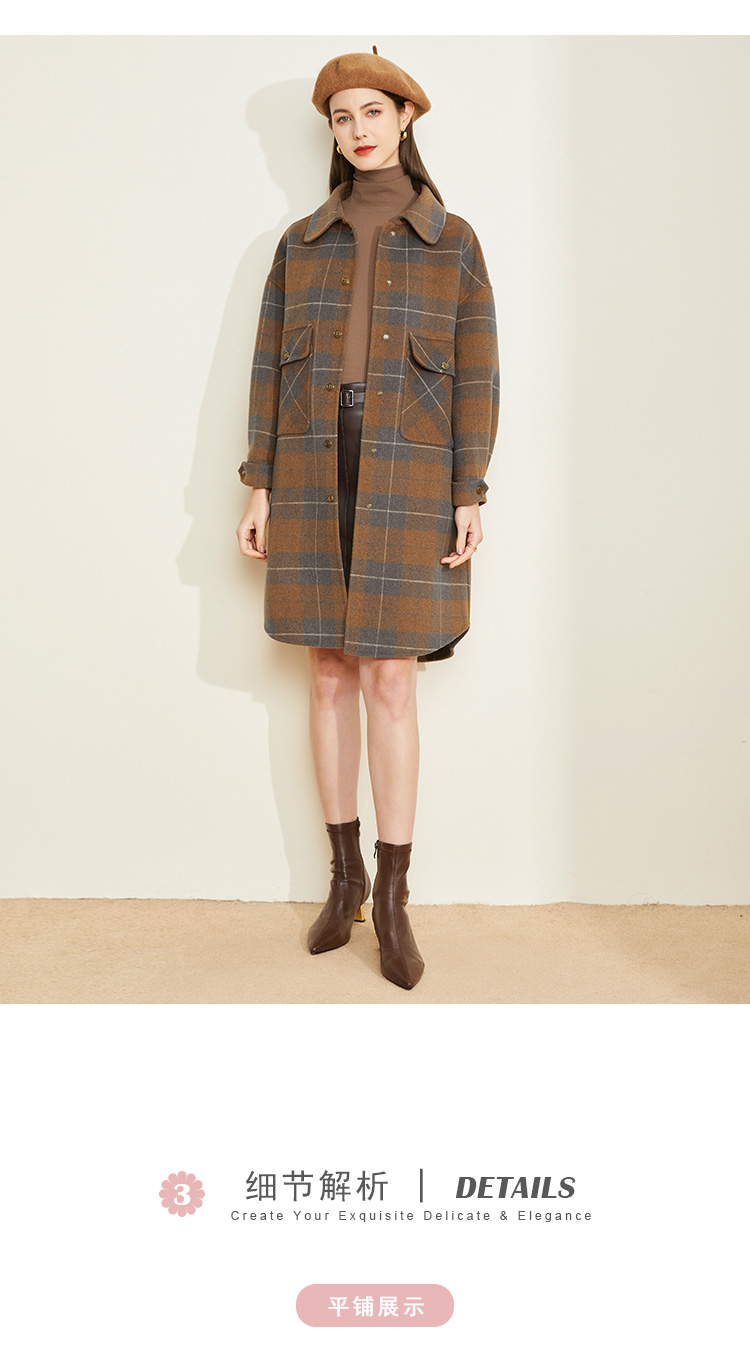 LH9L7斯尔丽2021瑟俪秋冬新款时尚字母金属扣外套格子双面呢中长大衣