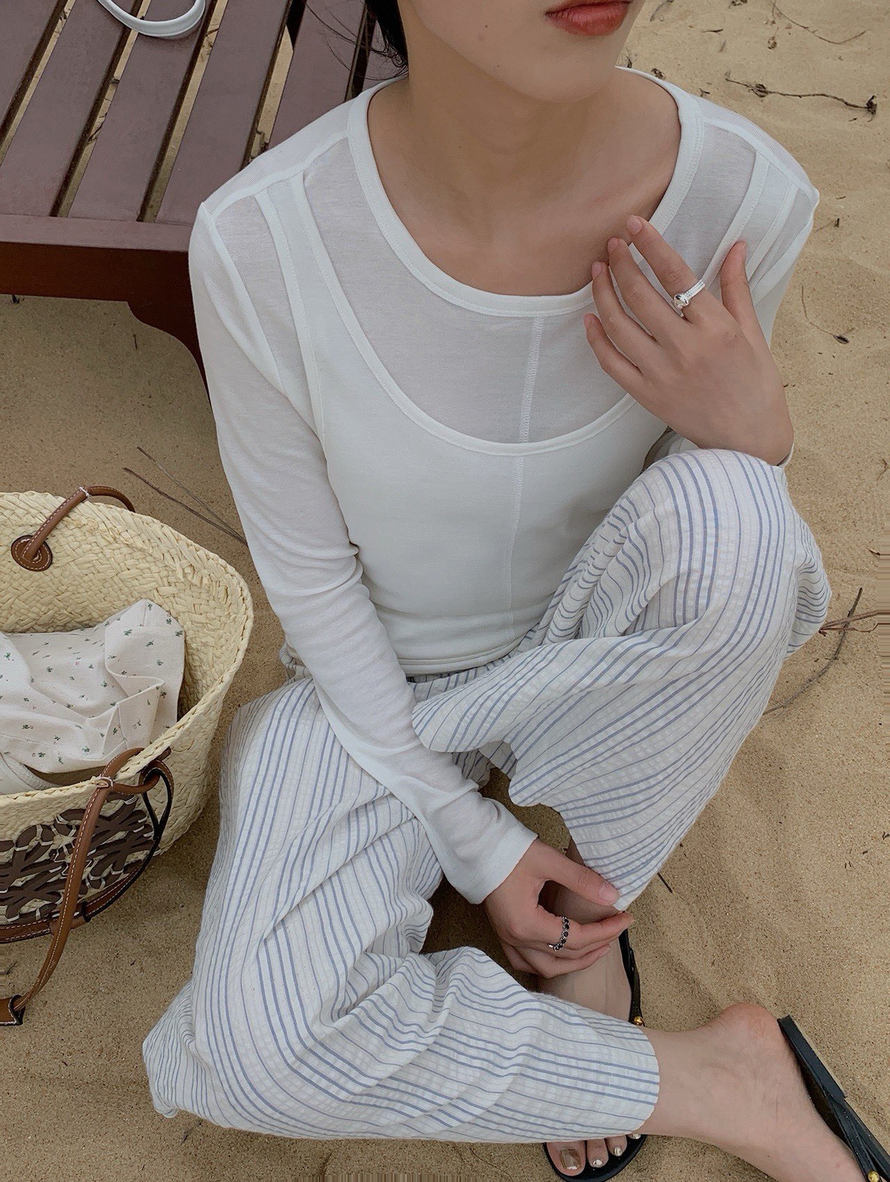 四个高级感基础色系,简约chic风拉满。搭配一条亮色的阔腿裤,或者同色系半身裙等等,戴上草帽去独家,舒适又惬意。