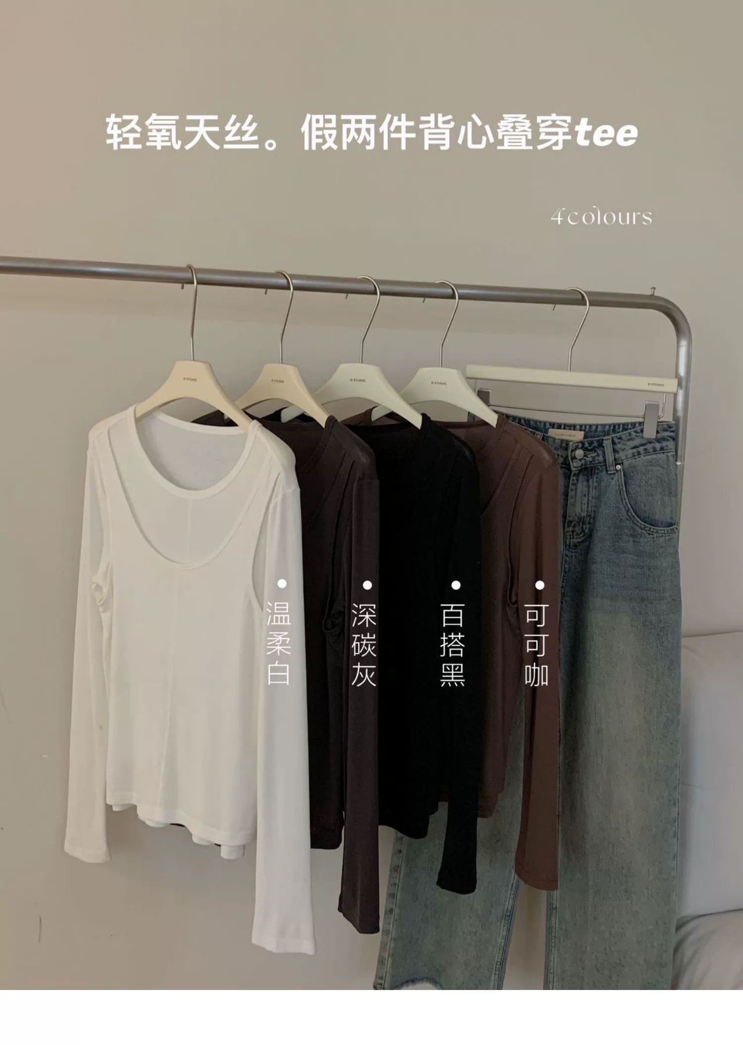 忽而冷忽而热的春夏交替,最爱的薄款T,春天穿不冷,夏天穿不热,温柔又体贴。96.3%莱赛尔天丝面料,手感柔滑,垂感出色,一件揉在手里,是会呼吸的云朵版的触感,满满的舒适。