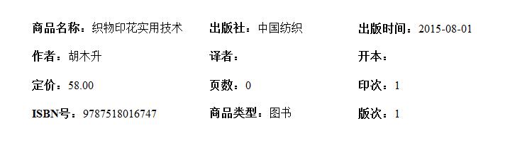 第一章 接单与审单 第一节 订单审核的原则 第二节 花样审理的主要内容 一、花样单位是否完整 二、纹样排列是否匀称 三、花样接头尺寸大小 四、确定组成套数 五、花布图案的色泽 六、印花成本 七、印制中可能会遇到问题的考虑 第三节 订单必须要明确的项目 第四节 接单与审单应注意的事项第二章 印花工艺设计 第一节 印花工艺范围的确定 第二节 印花设备的选用 第三节 印花方法的确定 第四节 印花生产要点分析 第五节 印花染料的选用 一、考虑色谱的齐全 二、考虑每一色谱染料在不同浓度时的各项染色牢度 三、考虑染料在印制中的适应性 第六节 确定网版排列顺序 第七节 各色浆间的协调 第八节 网版雕刻的要求 一、提供明确的网版雕刻制作的必要信息 二、网版只数的确定 三、关于“色”与“色”间雕刻关系的处理 四、网目的选定 五、网版刻幅、缩率的确定 第九节 制订印花前后处理要求 一、对印花半制品的要求 二、印花前待印半制品的准备 三、印花染料的固着 四、印花布固色后的平洗 第十节 印花工艺设计指定书的开列第三章 印花轮廓清晰度的提高 第一节 制版分色方法和技巧的掌握 一、印花色浆在织物表面的滞留状况 二、制版分色处理常用技术术语 三、制版分色处理方法必须深化和细化 四、辅助网版的考虑和配备 五、分色操作注意事项 第二节 对花不准疵病的防止与克服 一、一直对不准的对花不准与时有跑动的对花不准 二、圆网圆周距离的对花不准 三、一段一段无规律的对花不准 四、具有对称性的中间对得准、两边对不准的对花不准 五、布幅局部对花不准的对花不准 六、全布幅连续性的对花不准 七、对花对准后时有跑动的对花不准 第三节 异色(第三色)疵病的防止与克服 一、异色产生的原因 二、克服异色疵病产生可采取的措施 第四节 渗化疵病的防止与克服 一、布面全幅性渗化 二、布面局部性斑渍状渗化 三、条状渗化第四章 色泽鲜艳度的保证 第一节 注意做好印花半制品的白地白度 ……第五章 网版制作第六章 不同组织规格、品种的织物印花第七章 特种印花第七章 特种印花第八章 针织物印花参考文献