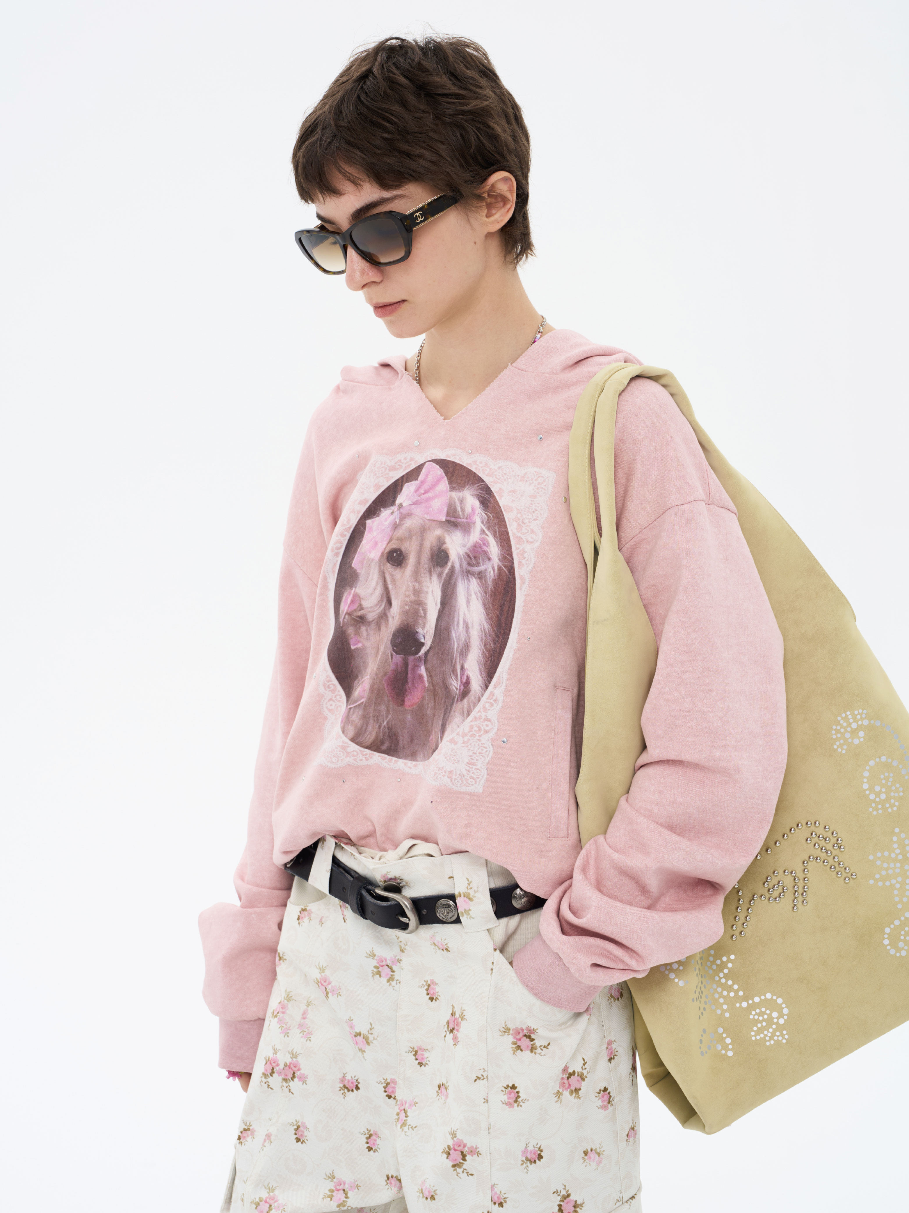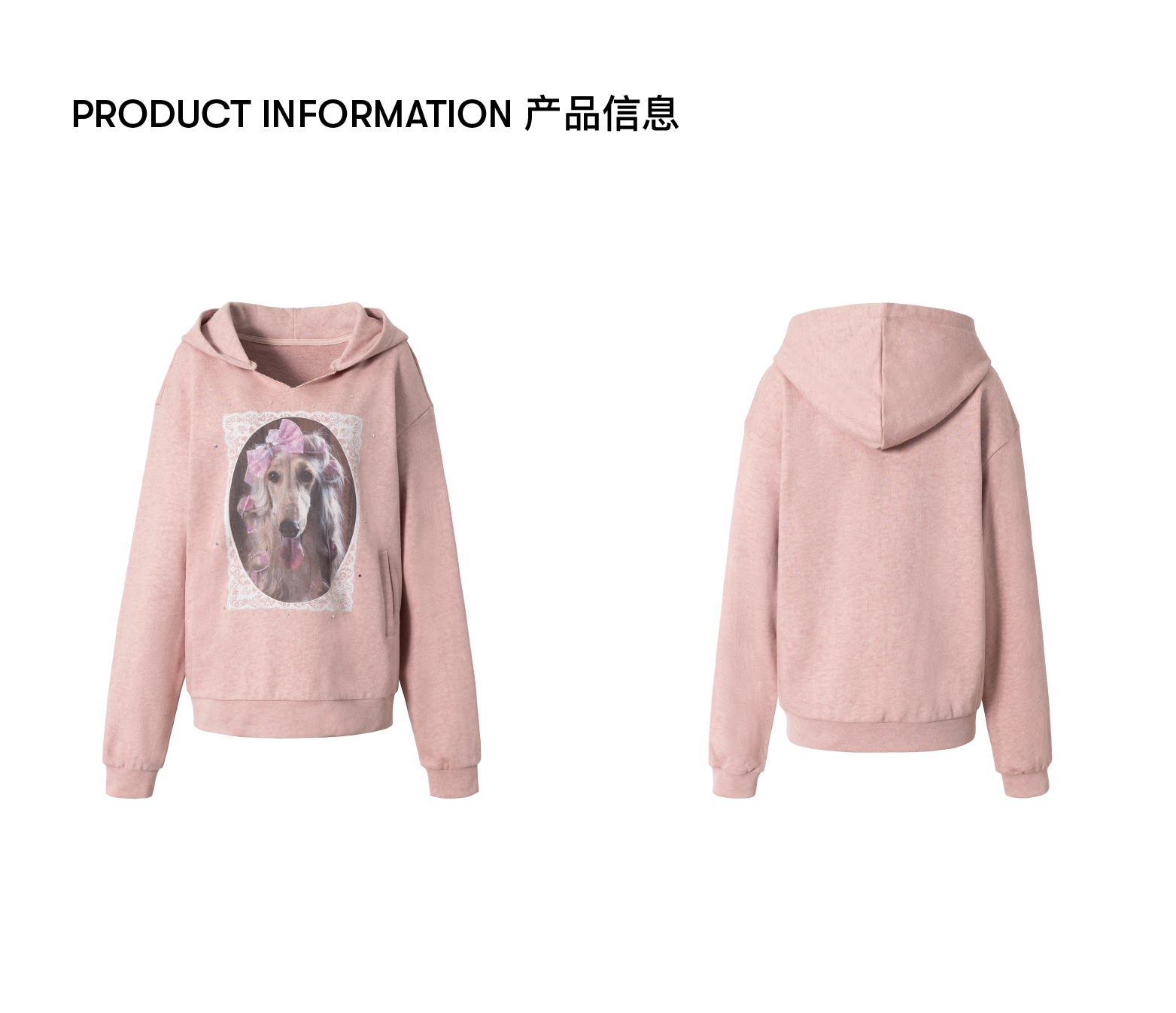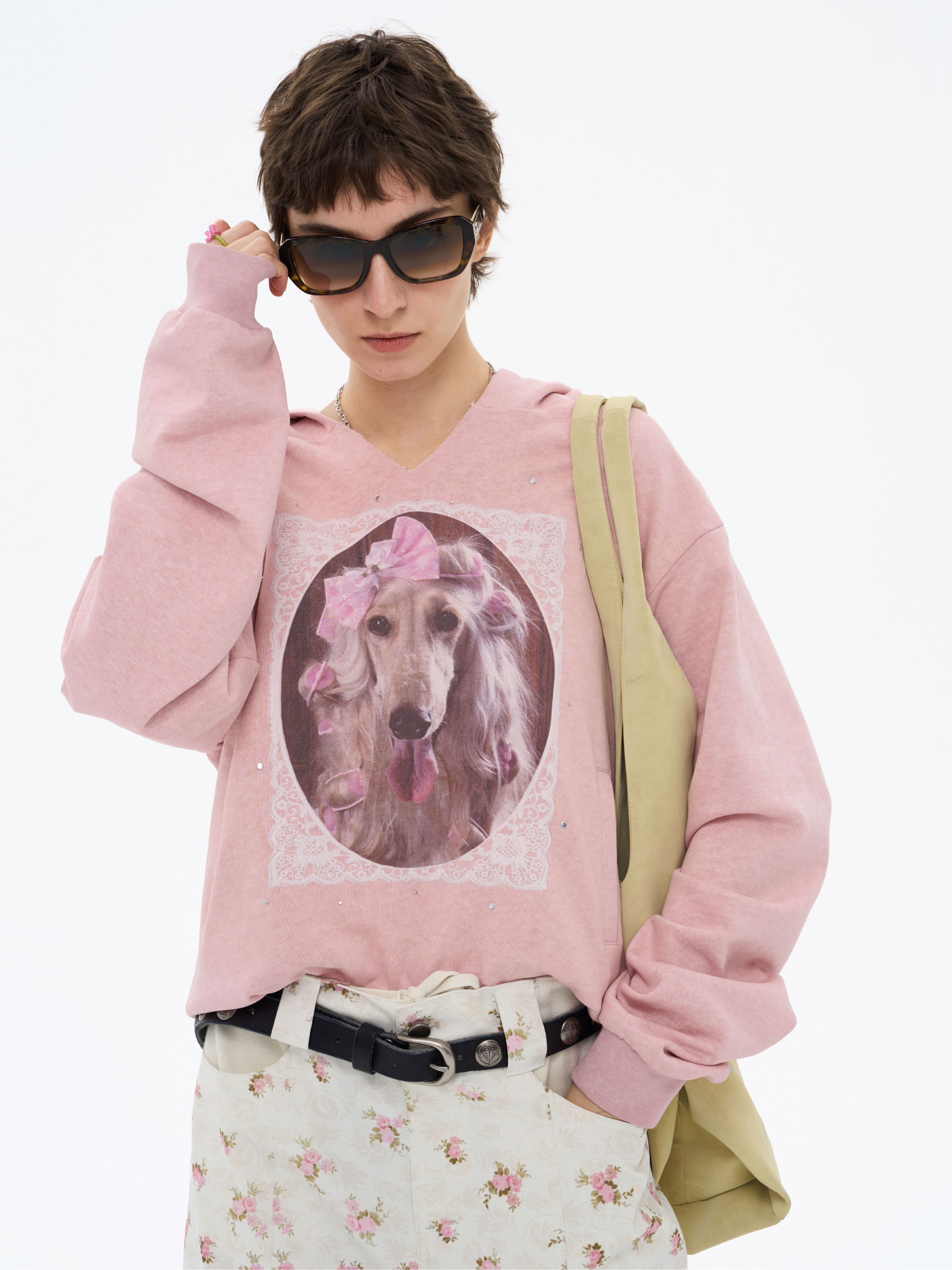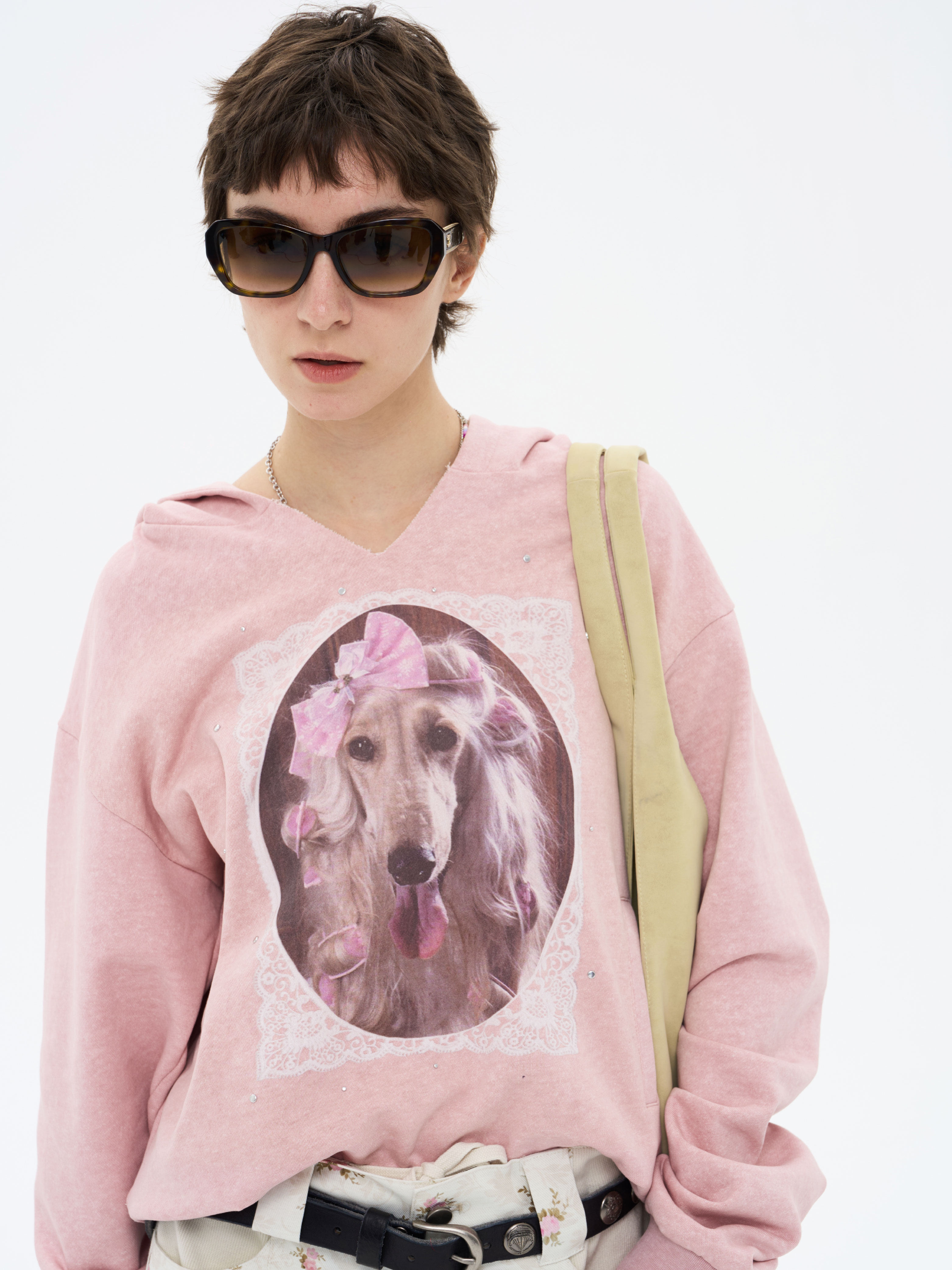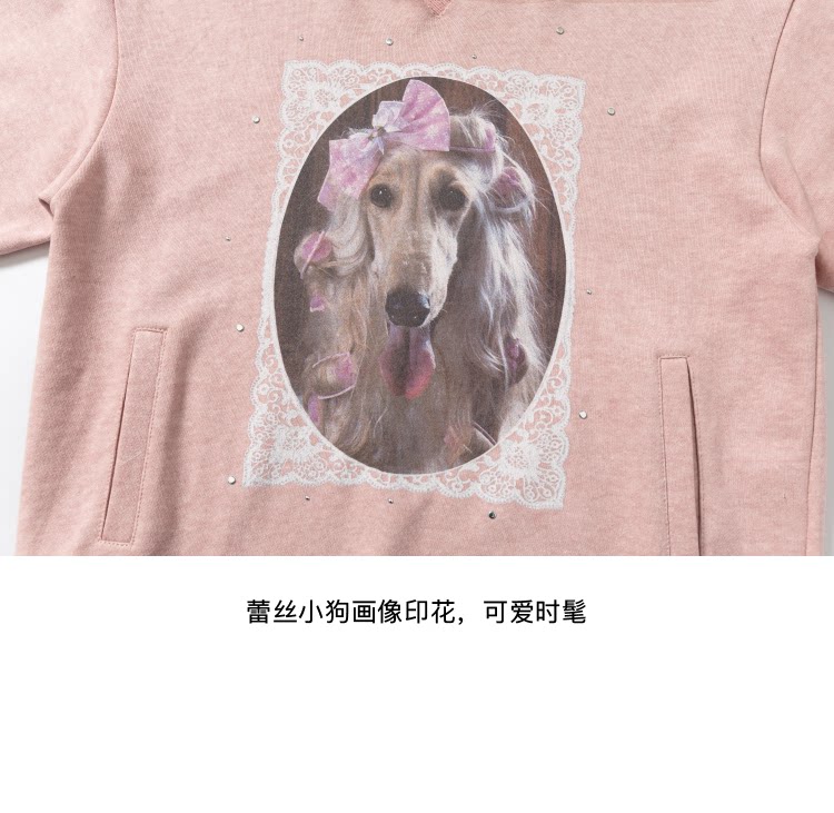 local tag/lt26ssk21/蕾丝小狗画像 印花烫钉做旧卫衣