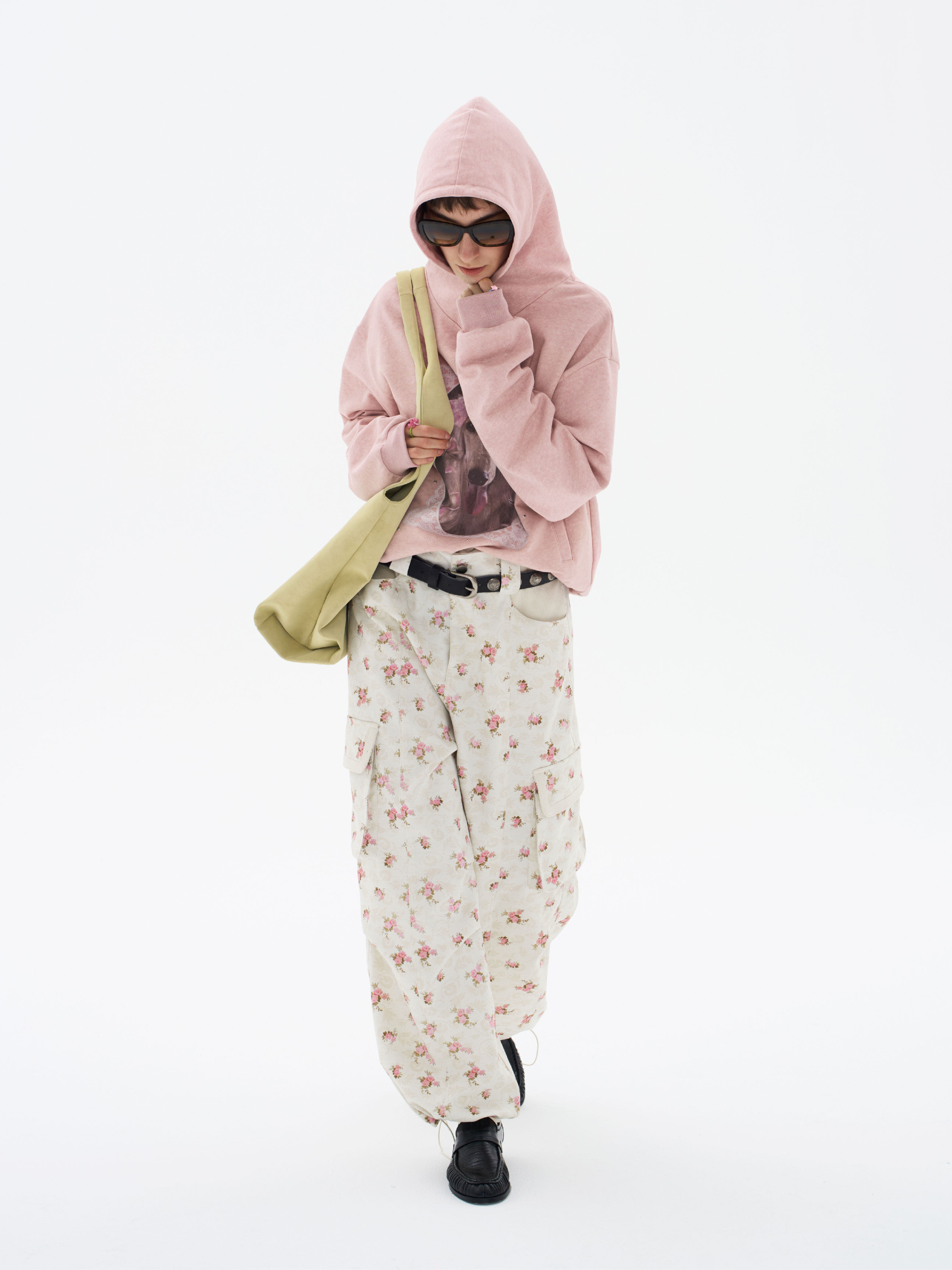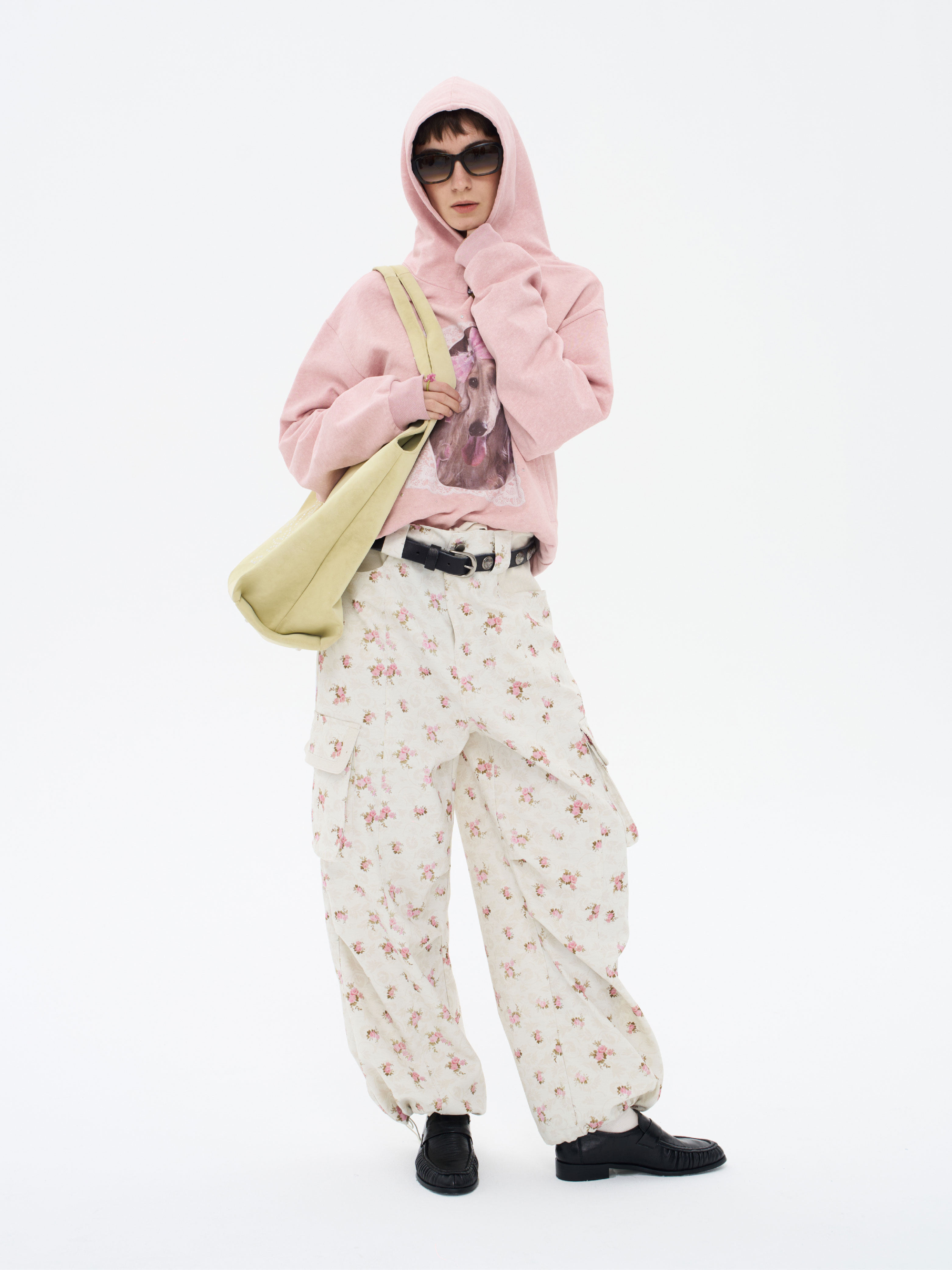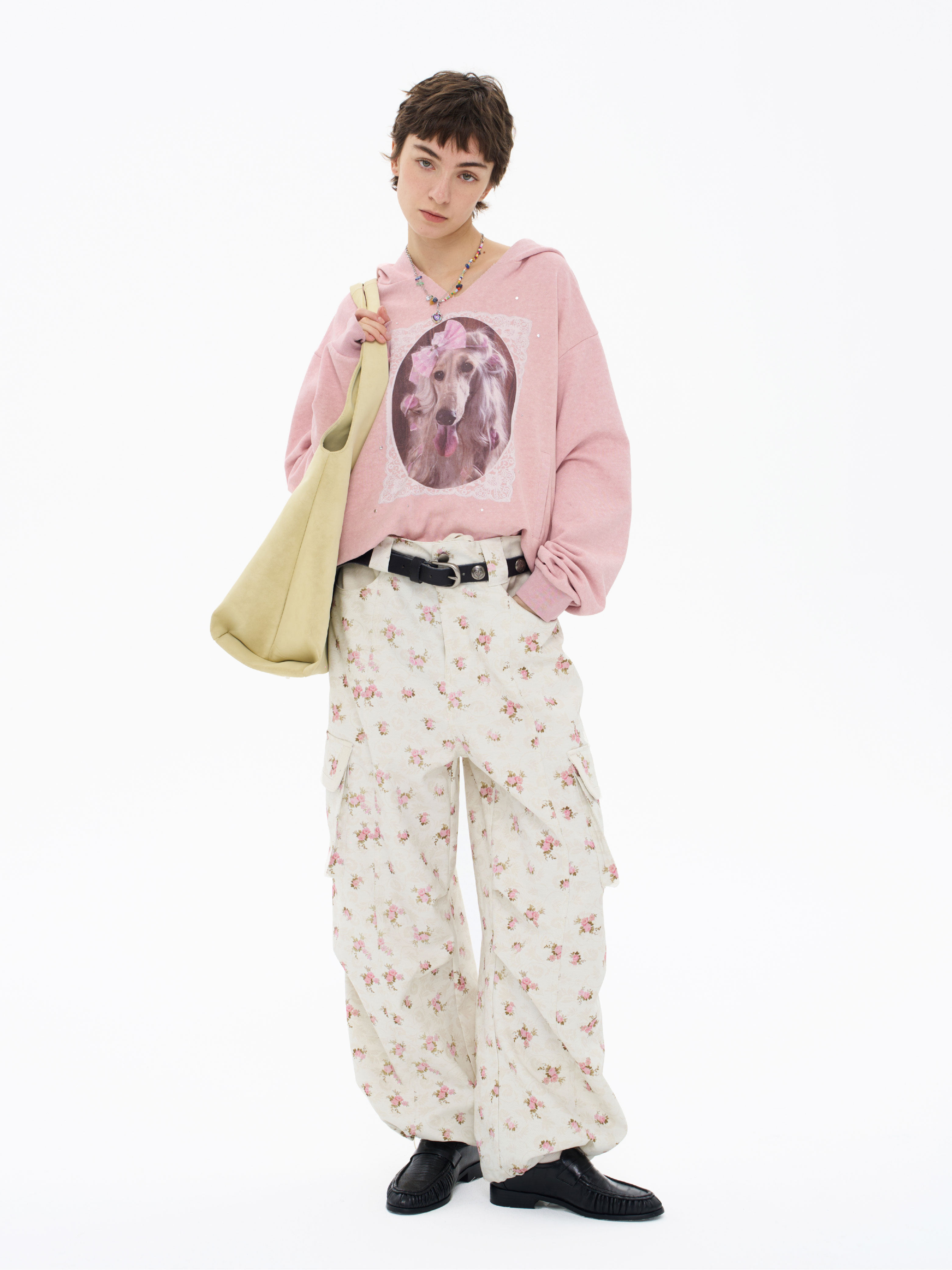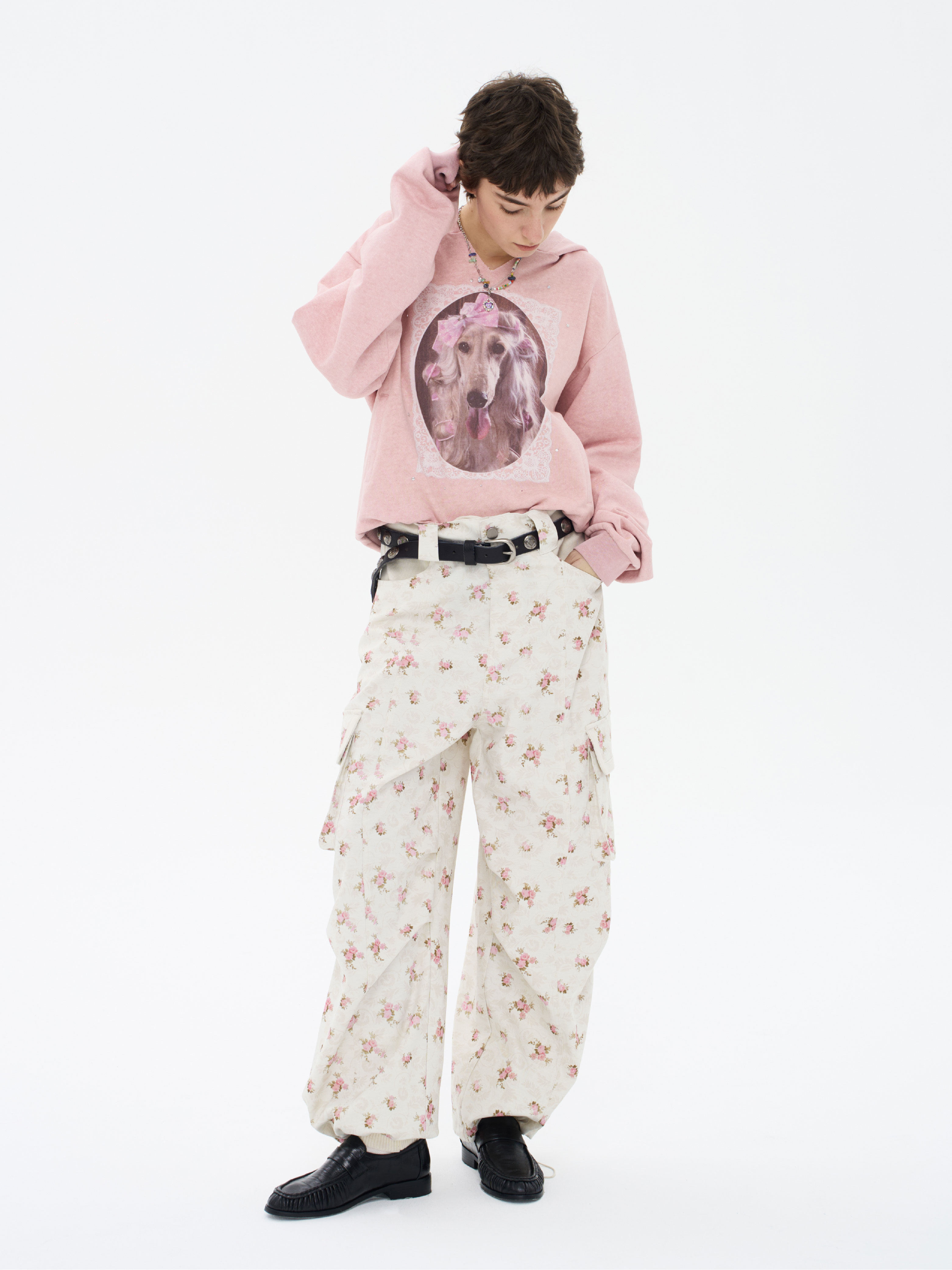 local tag/lt26ssk21/蕾丝小狗画像 印花烫钉做旧卫衣