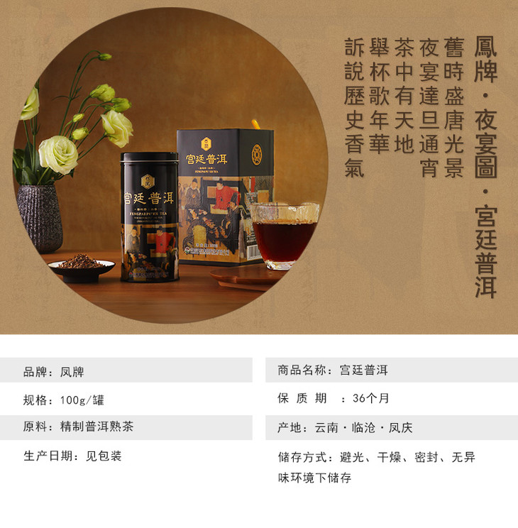 【凤牌茶叶】 普洱熟茶 云南临沧宫廷普洱熟茶听装100g