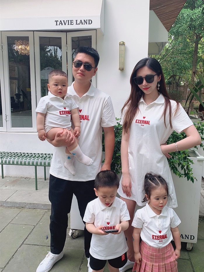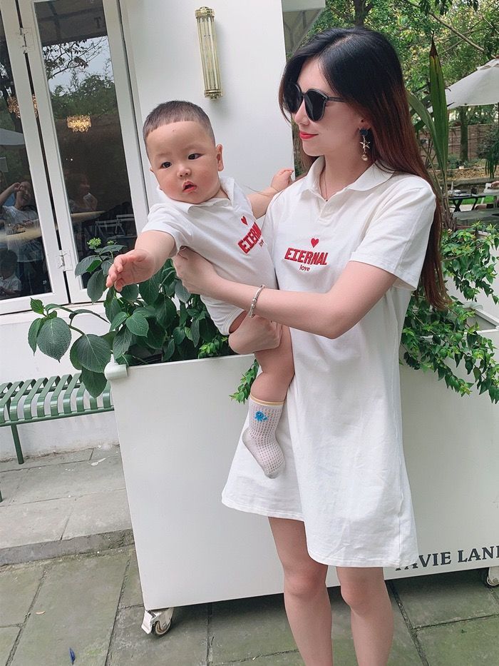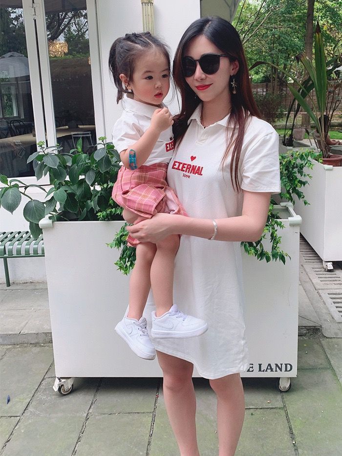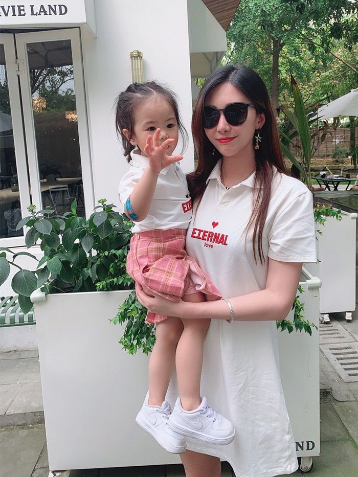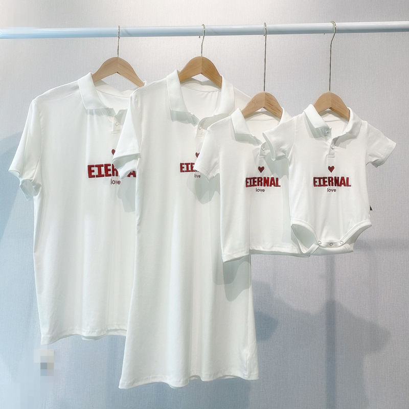 黛唯梵 婴儿亲子装夏装一家三四母子短袖t恤母女爱心POLO衫连衣裙潮国庆出游