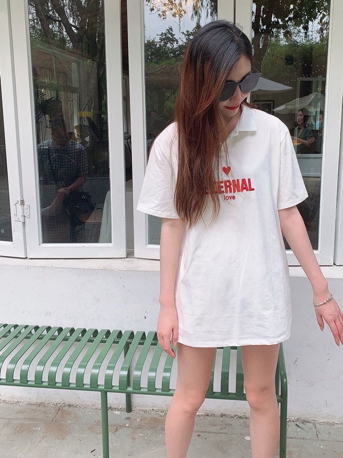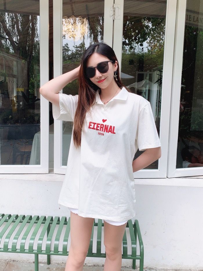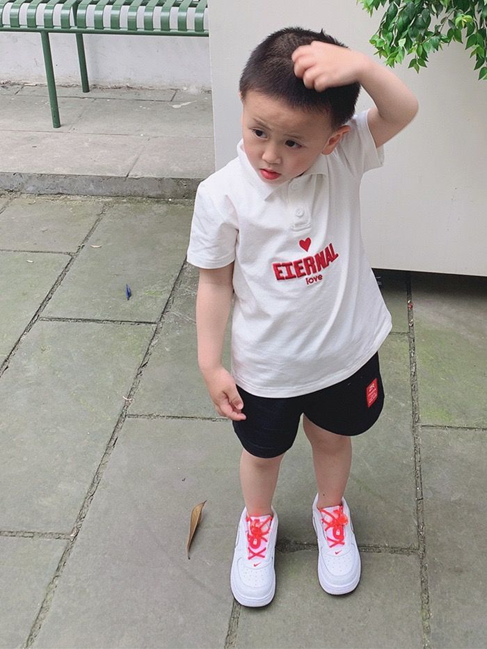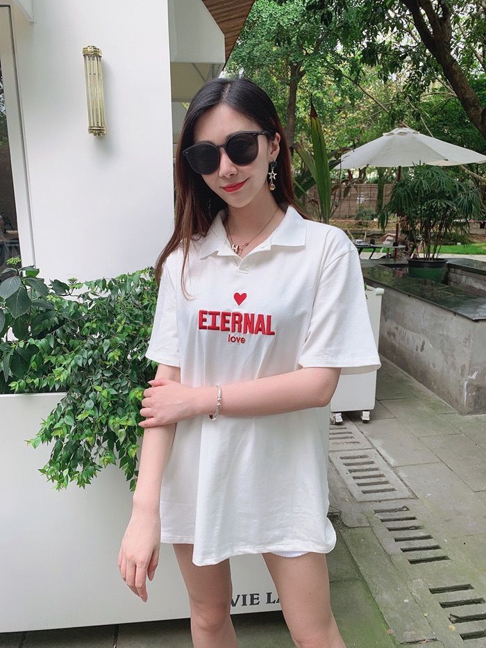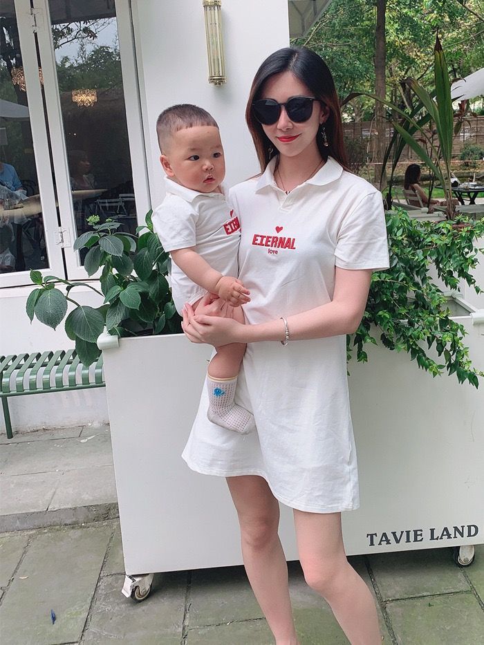 黛唯梵 婴儿亲子装夏装一家三四母子短袖t恤母女爱心POLO衫连衣裙潮国庆出游