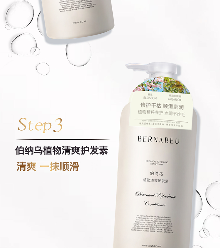 心选丨伯纳乌 水润去屑/清盈柔顺洗发水/沐浴两瓶装