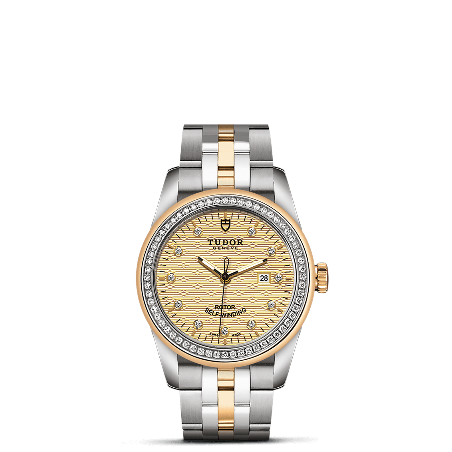 磨光黄金及钢双外圈,镶60颗钻石