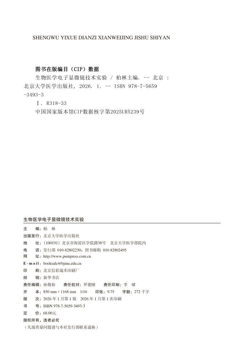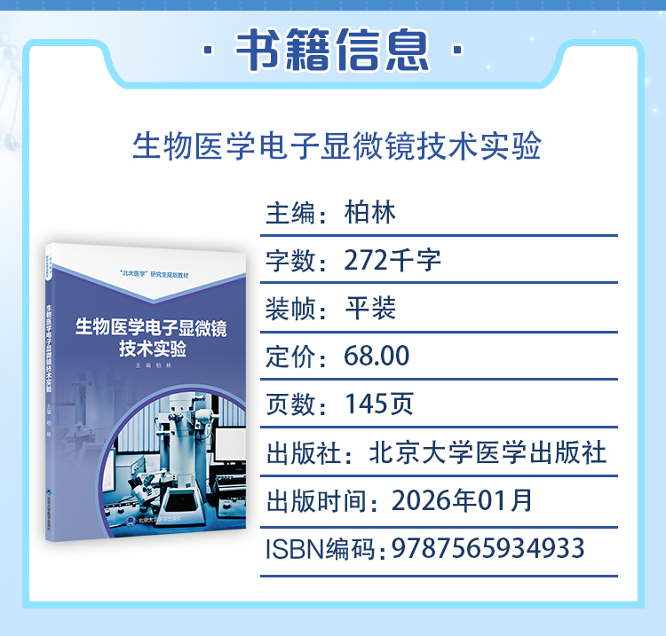 生物医学电子显微镜技术实验 北大医学研究生规划教材 柏林 涵盖样品制备操作技巧图像拍摄和数据分析等环节 北京大学医学出版社