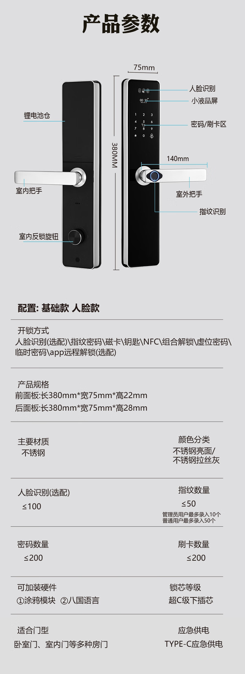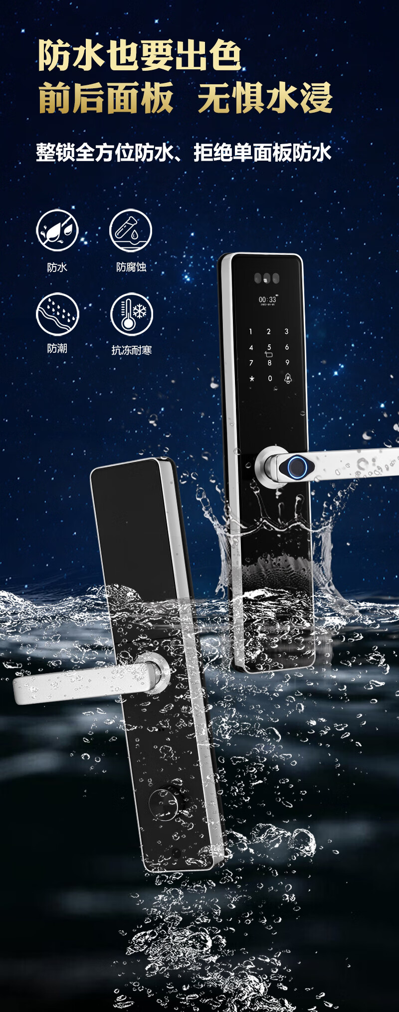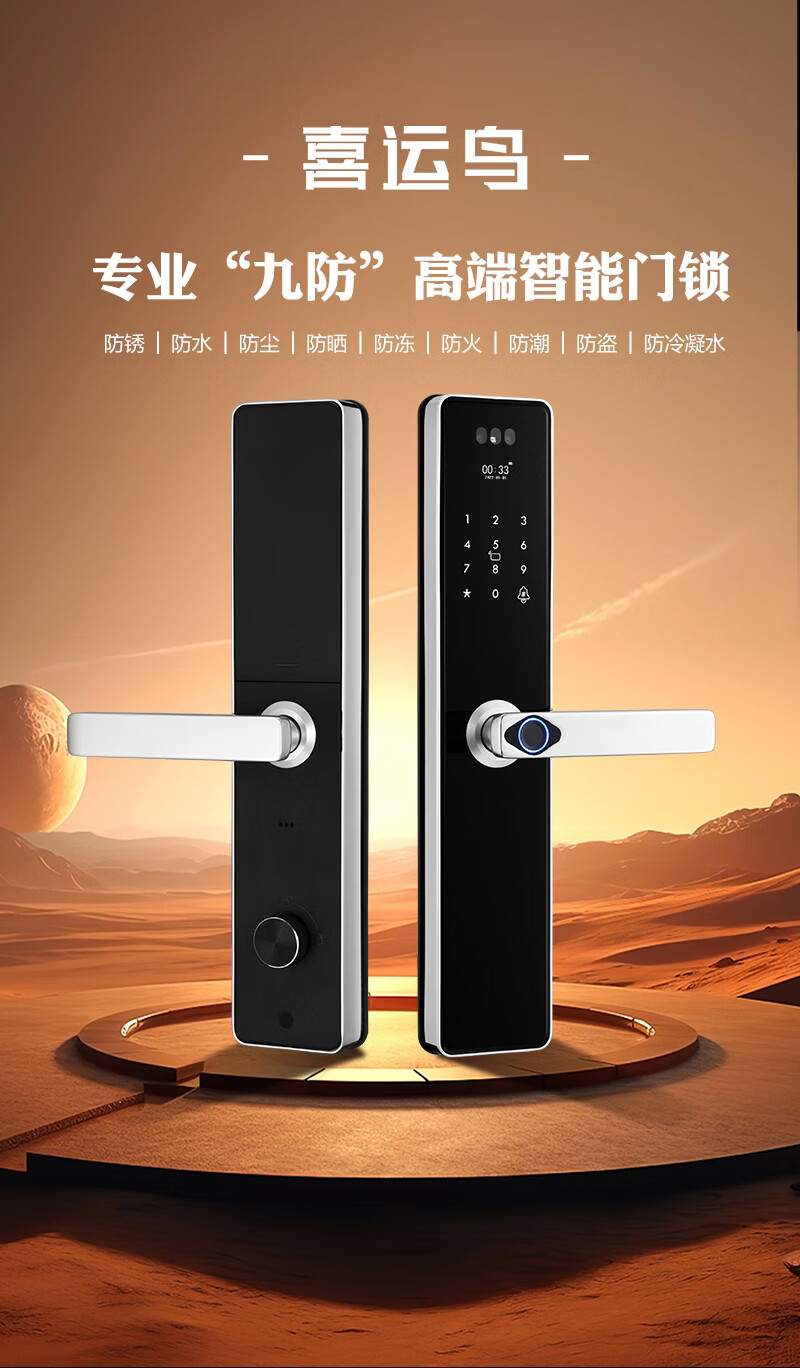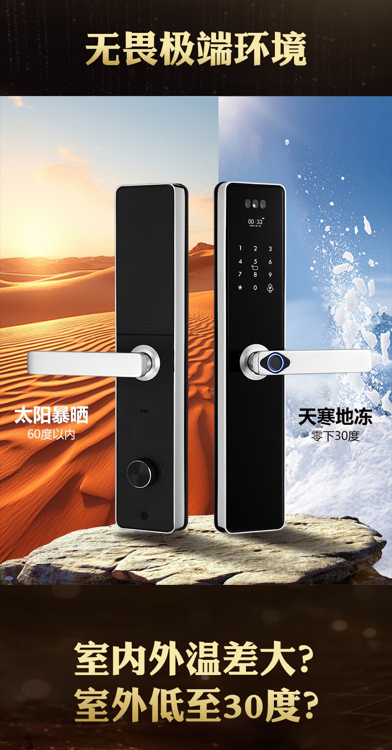 凯施曼防水指纹锁家用防盗门密码锁304不锈钢 户外智能锁 不锈钢基础款 基础功能版
