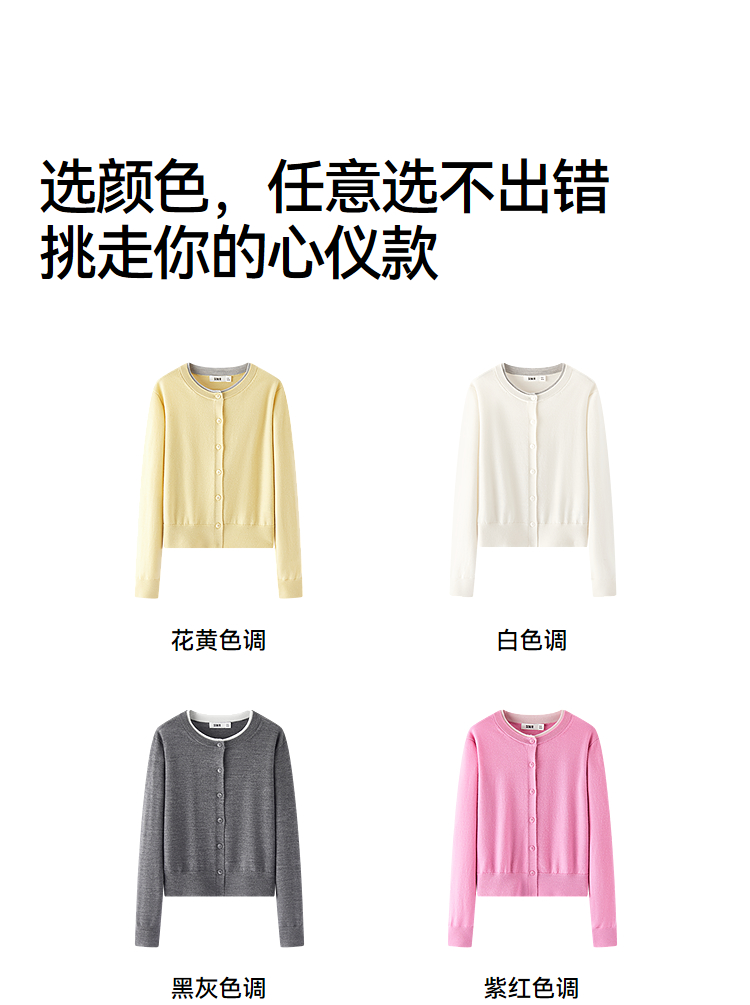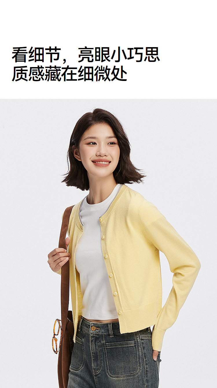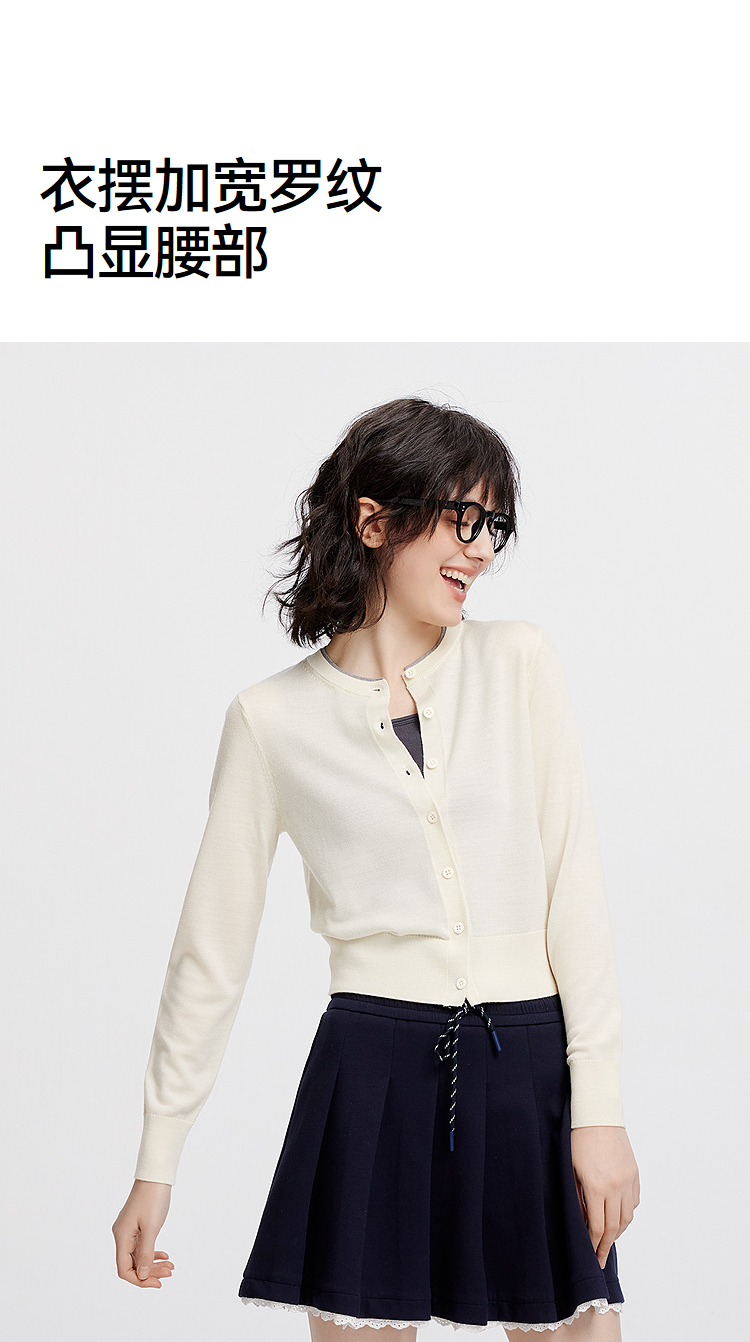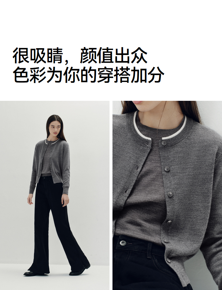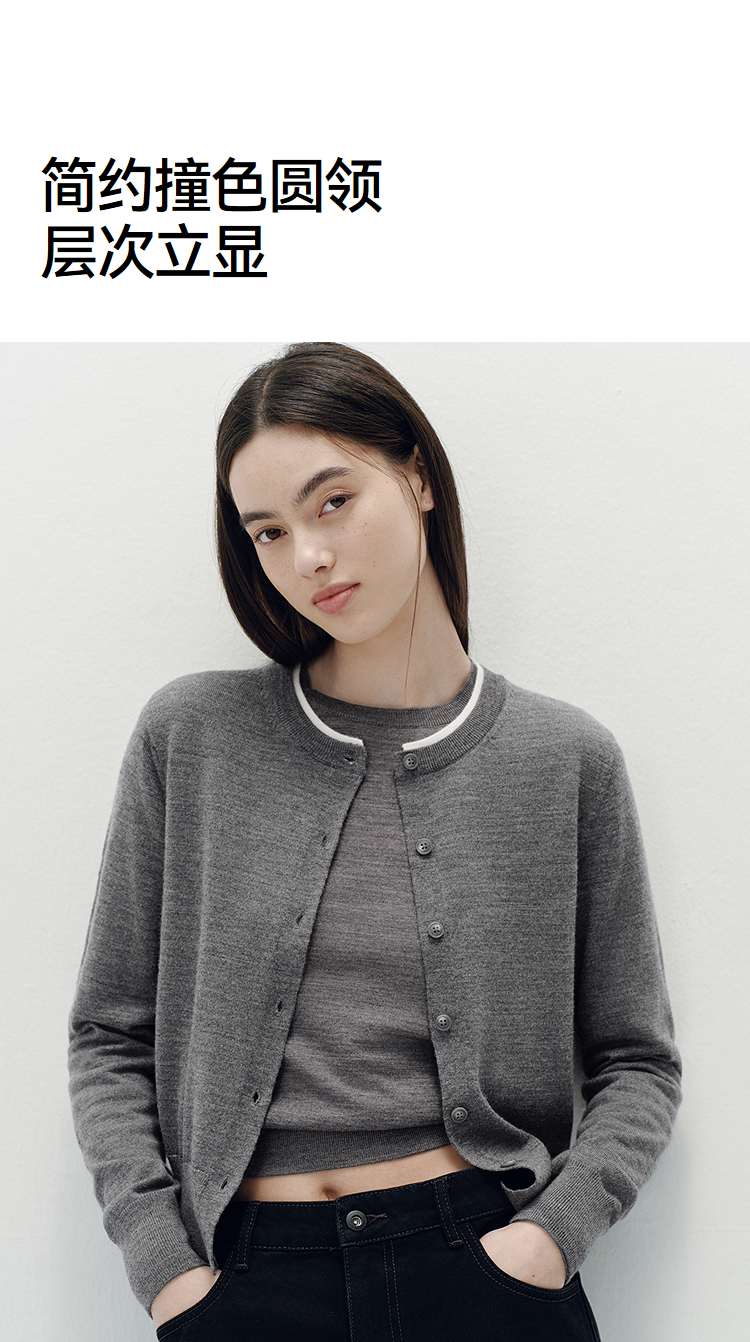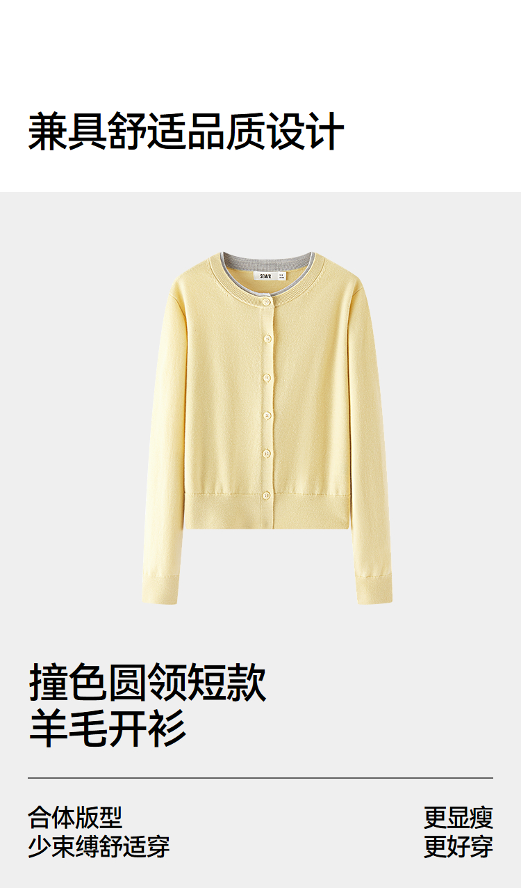 [商场同款]森马针织开衫女短款撞色圆领显瘦2025秋季新款羊毛上衣