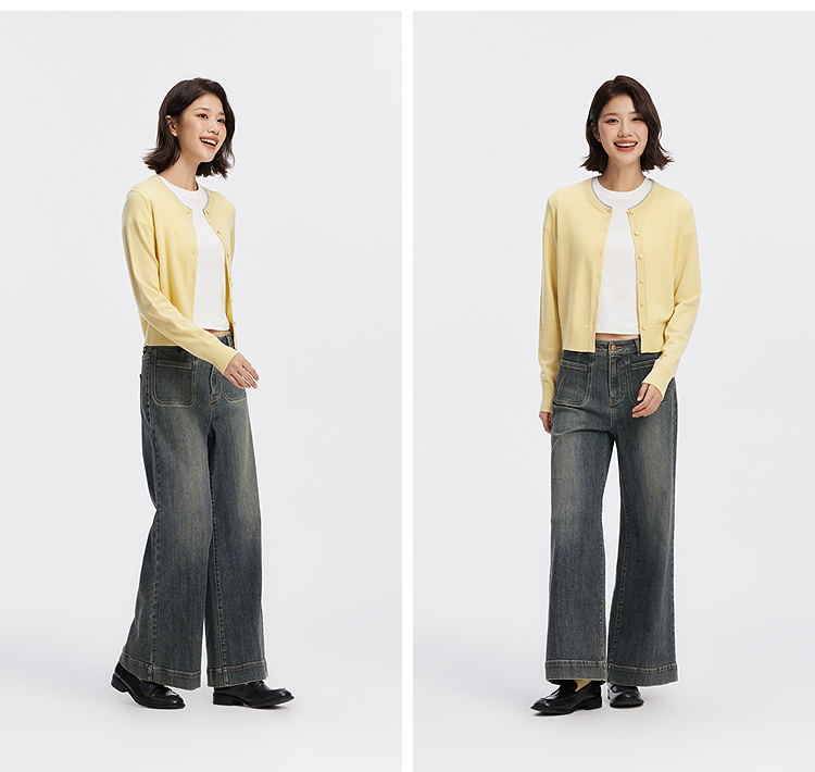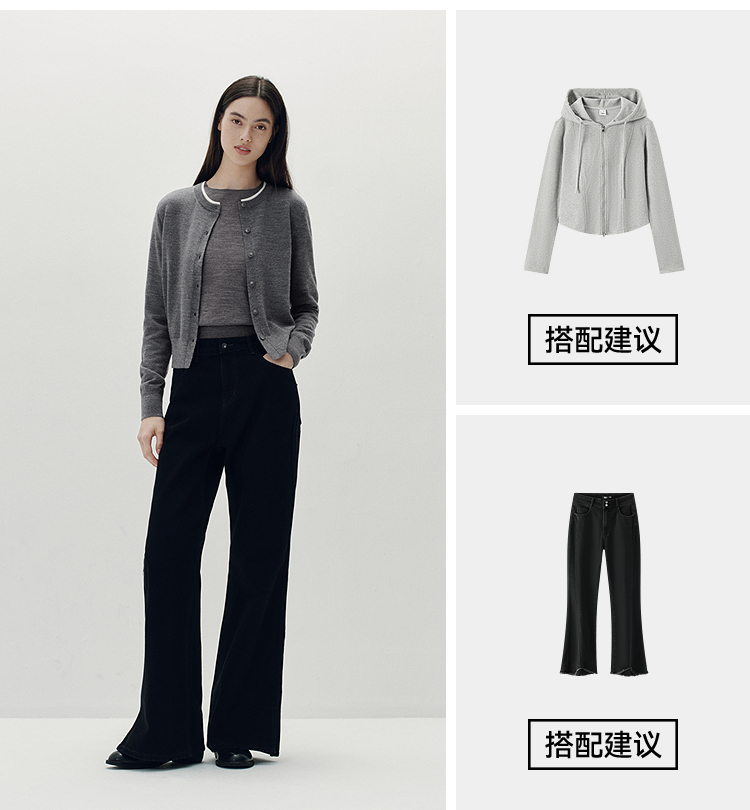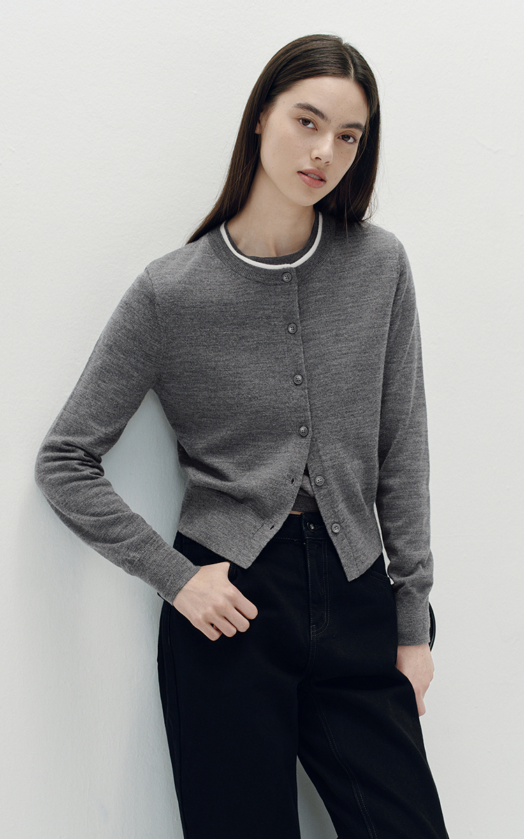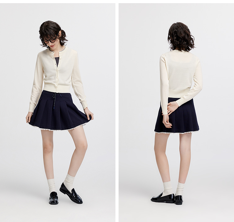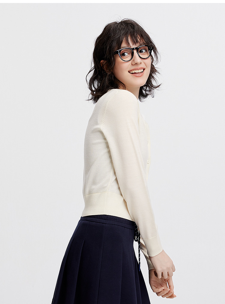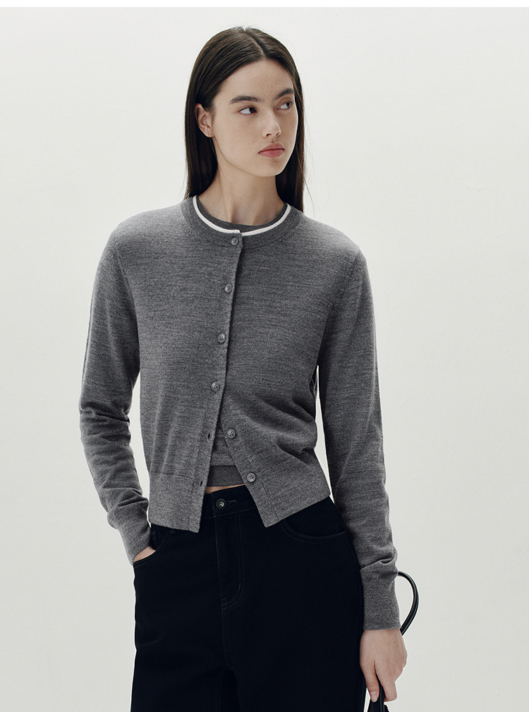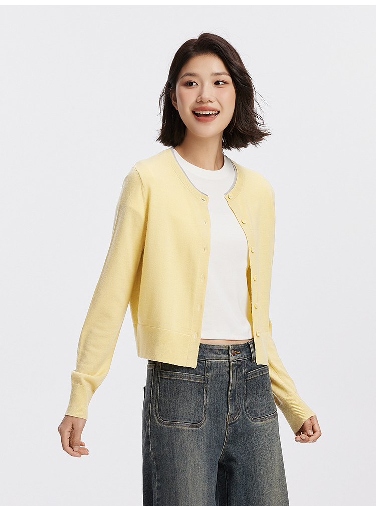 [商场同款]森马针织开衫女短款撞色圆领显瘦2025秋季新款羊毛上衣