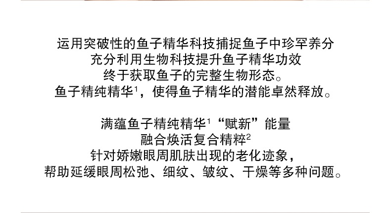 这款眼霜的秘密武器就是它的两大成分:鱼子精纯精华和莱珀妮焕活复合精粹。