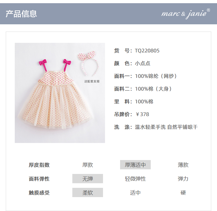 marcjanie马克珍妮夏装新款 女童纯棉波点吊带连衣裙220805
