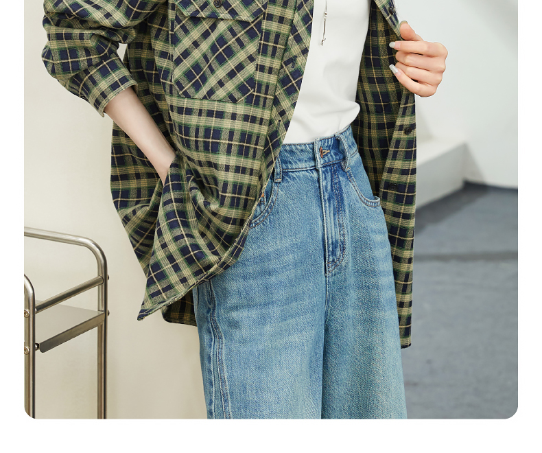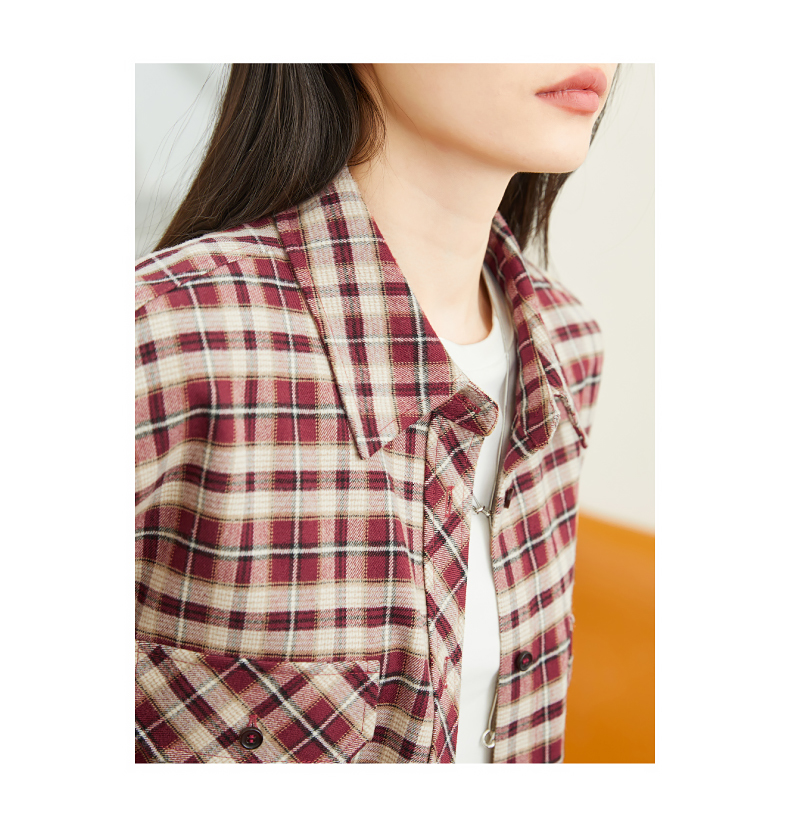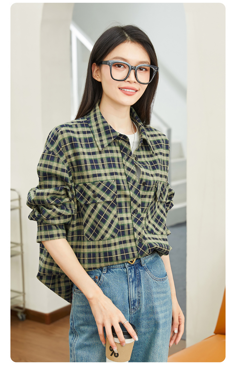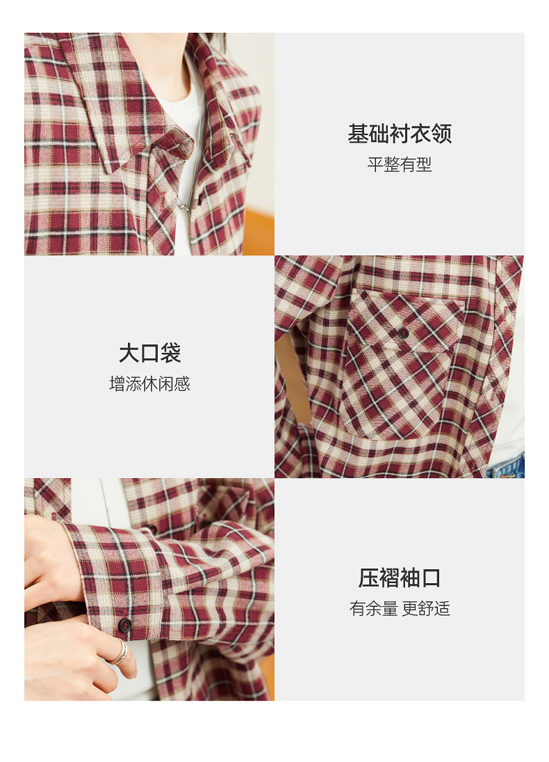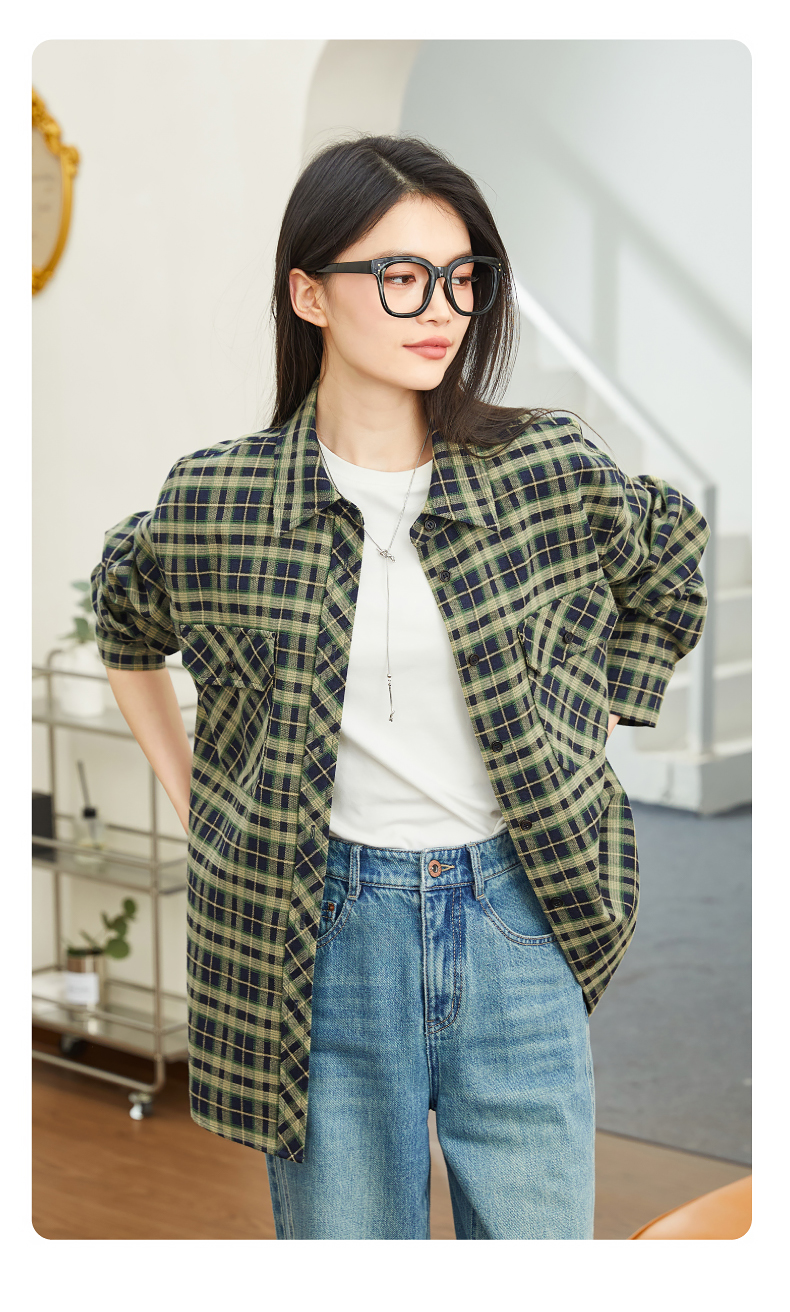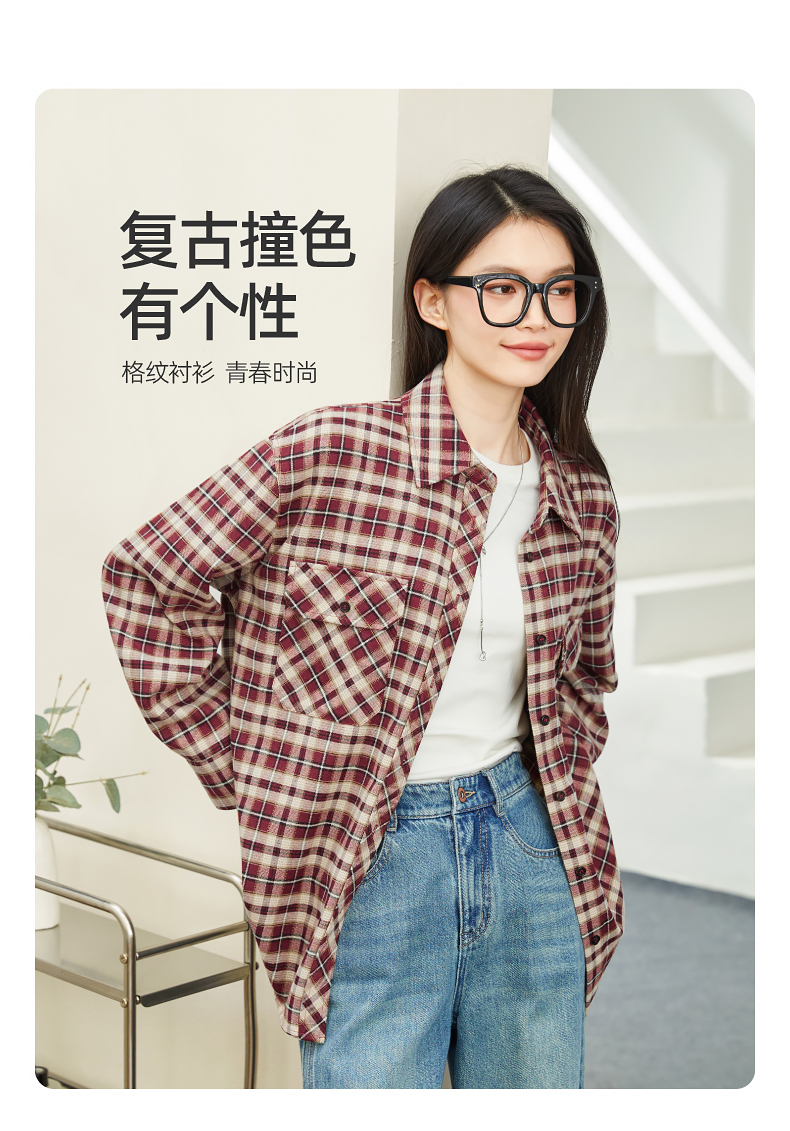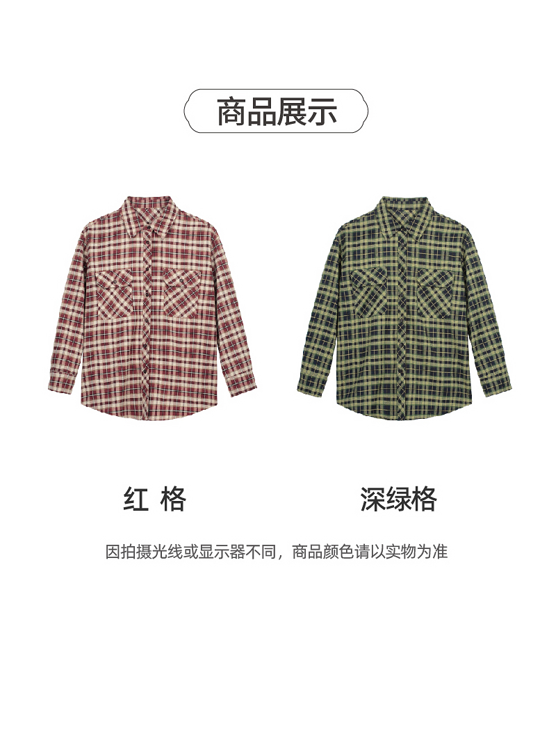 【 超值!彩色格纹衬衫】逸阳秋polo领长袖休闲百搭复古宽松上衣外套3948