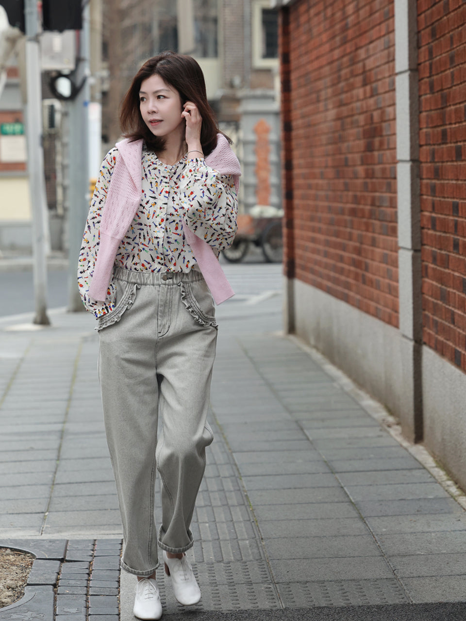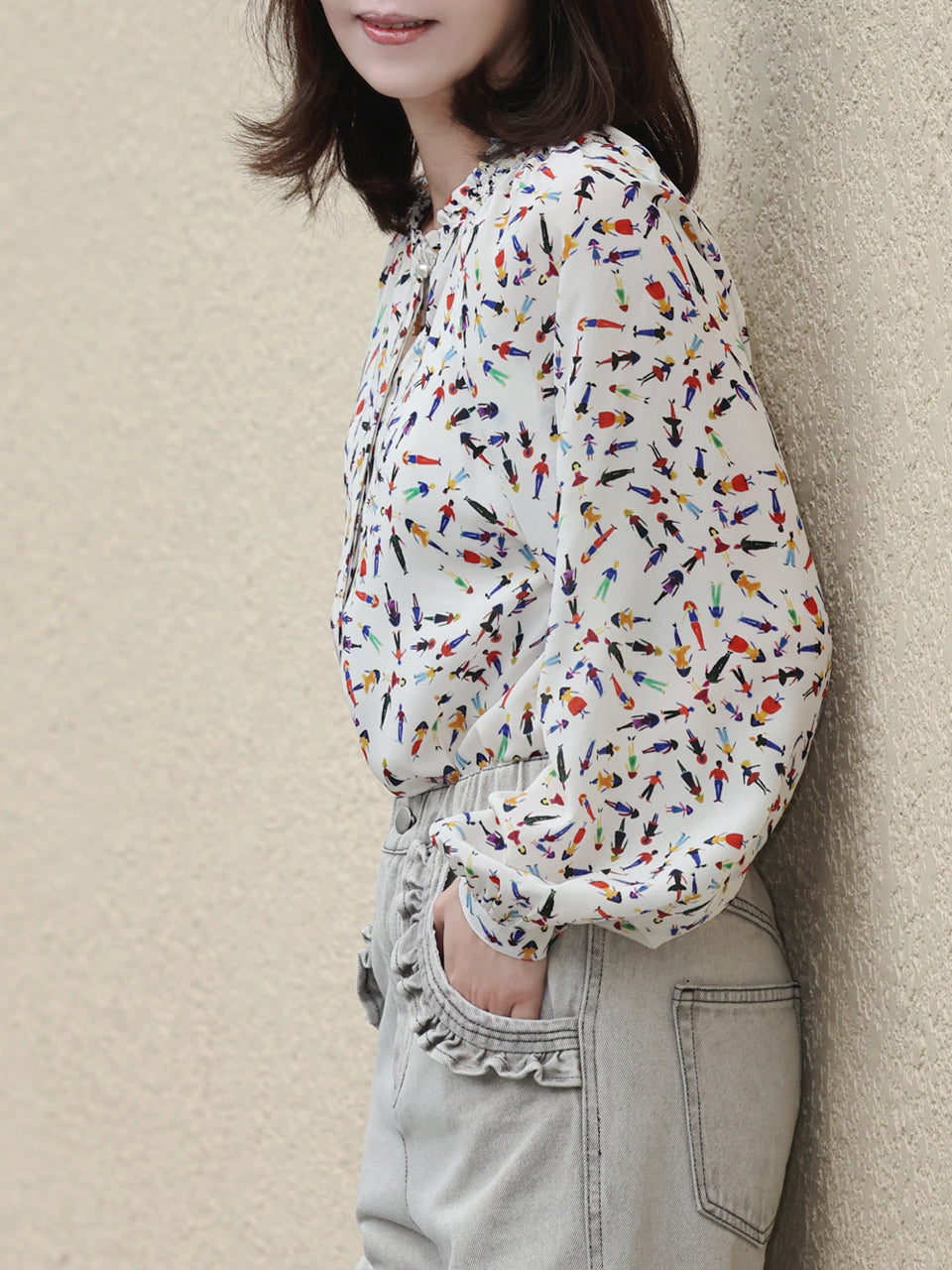 TYNVIE 荷叶边领插肩衬衫 - 印花