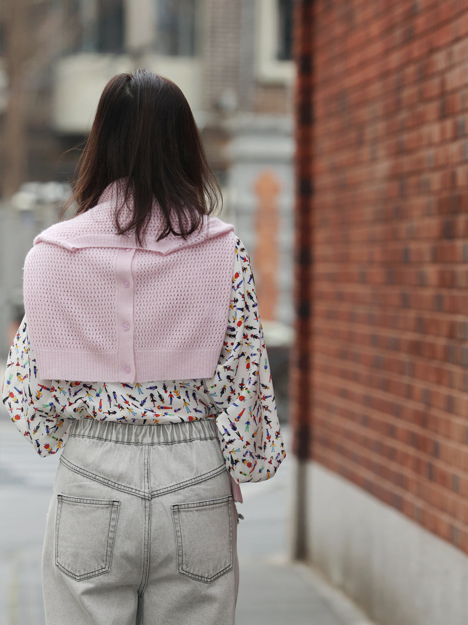 TYNVIE 拼布领圈无袖上衣- 织花白色