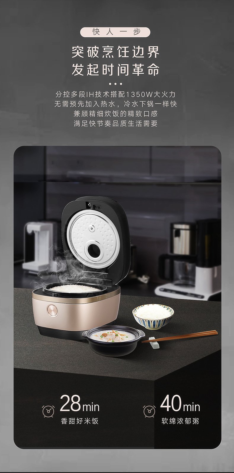 【预售】大松·IH智能电饭煲 GDCF-4013C 黑+香槟金色