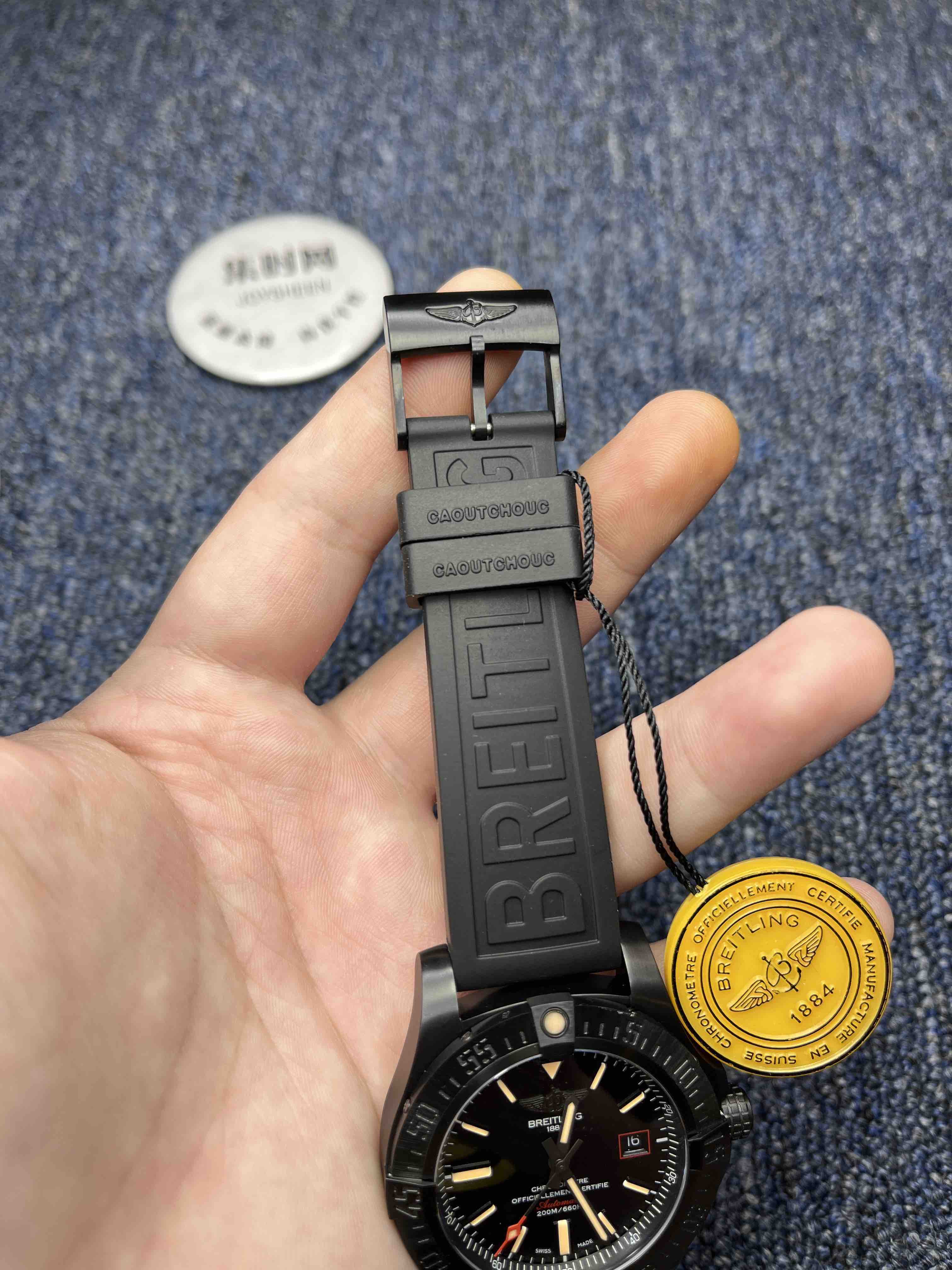 【表盘】日历字体和盘面logo采用叠加印刷工艺,盘面的底色纹路经过无数次过滤改正,确保百分百吻合与原装。其上的百年灵金属LOGO单独开模,无论是立体感还是圆润度均可PK原装。
